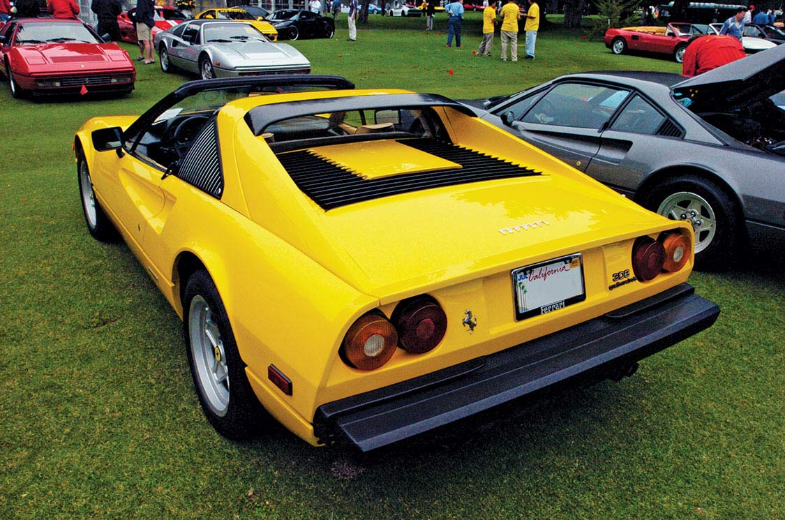 The two-seat GTB (coupe) and GTS (Spyder) were sold alongside the Dino and enjoyed huge sales success, due in part to the highly visible example driven by actor Tom Selleck in the popular television series Magnum, P.I. The first ones had fiberglass bodies, but by 1976 they were switched to steel. The rare ’glass models now run more than $60,000, but metal models are half that. The 1975-79 308 models shared the carbureted 3.0L engine with the Dino GT4, but in 1980 a lackluster fuel-injection system robbed horsepower from the 308 GTBi and GTSi versions. In 1982 four-valve heads brought the Quattrovalvole GTB QV and GTS QV models back to 308 power levels. Although all 308 models were available through the American dealer network, a substantial number of lighter, faster European models were adapted by the gray market industry with widely varying degrees of proficiency.
