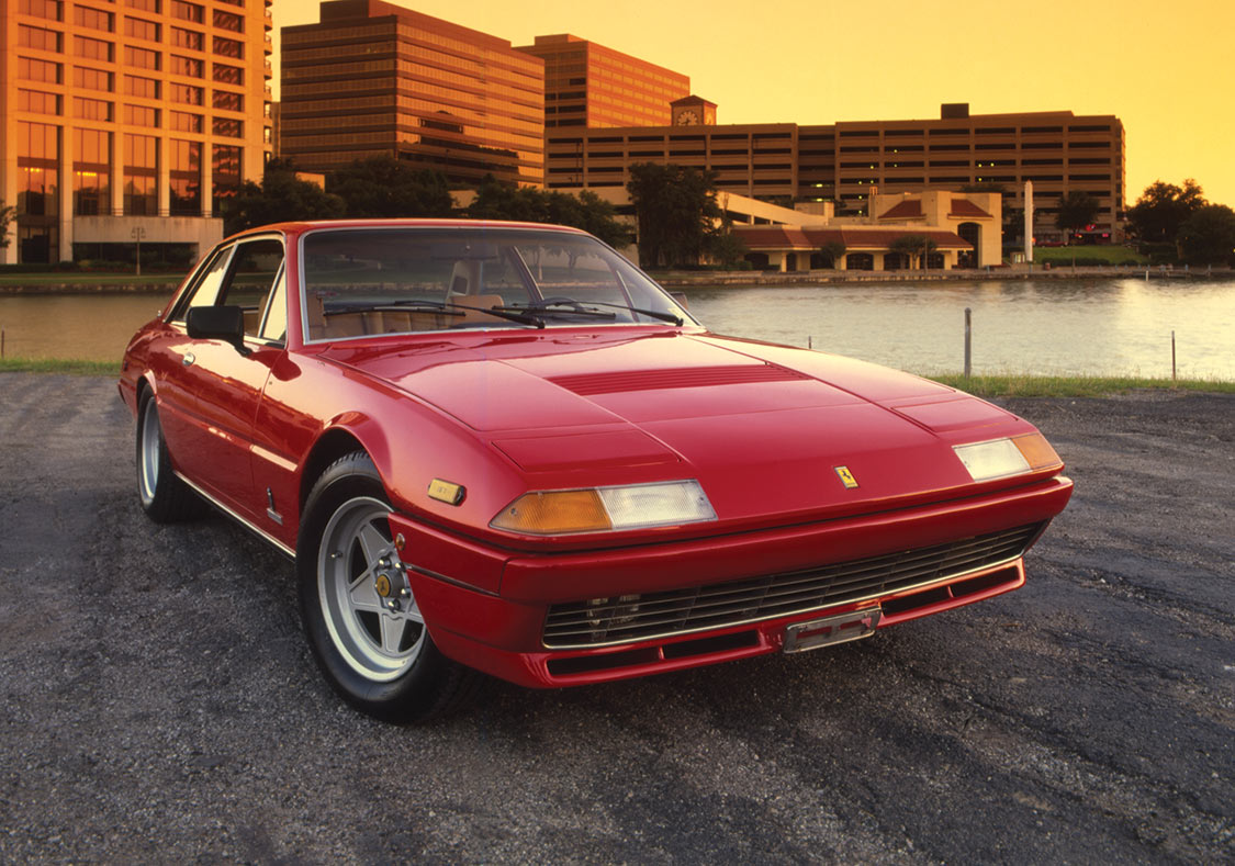 The GT4 was the first V-8-powered street Ferrari, and followed the popular 246 Dino. Like its predecessor, it was named for Enzo Ferrari’s late son Alfredo (Dino) and initially had no Ferrari emblems on the outside. In 1976, the badging was switched to Ferrari at the insistence of the dealers. The wedgy 2+2 styling by the Italian styling house Bertone was initially considered too tame when compared to the racy two-seat 246. The 308’s 16-valve engine (3.0L, eight cylinders) was fed by four Weber carburetors and produced 230 hp in American market tune. The engine was mounted transversely behind the driver for a compact package. After years of being the cheapest used Ferrari, the Dino has seen a resurgence of popularity lately.