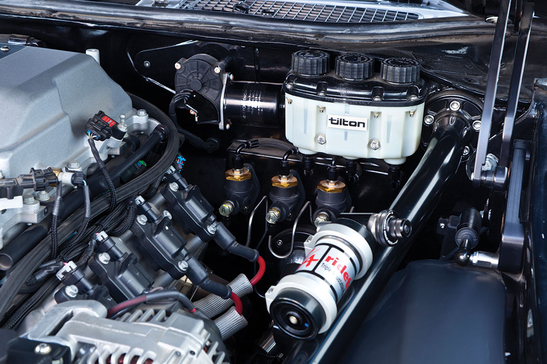 The engine provides the reliability and tenability of a modern LS3 engine topped with a supercharger providing even more horsepower that’s friendly to gas mileage as well. An AutoRad radiator helps keep things cool, while a K&N air intake flows to custom-built 1.875-inch stainless steel headers and 3-inch exhaust with Magnaflow mufflers.