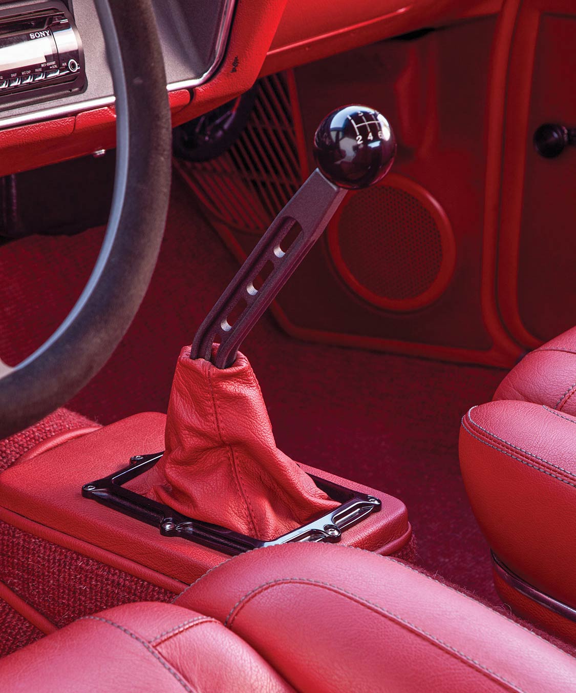 Greg didn’t have to look far beyond his inventory for the perfect power plant for the pro-touring ride. With Chevrolet Performance offering crate engines from its high-performance cars to the public, a 2012 Chevrolet LSA supercharged engine pushing almost 600 hp was the perfect fit. The engine provides the reliability and tenability of a modern LS3 engine topped with a supercharger providing even more horsepower that’s friendly to gas mileage as well. An AutoRad radiator helps keep things cool, while a K&N air intake flows to custom-built 1.875-inch stainless steel headers and 3-inch exhaust with Magnaflow mufflers. The powerful engine is backed with a Tremec Magnum transmission and twin-disc clutch to a custom-built driveshaft. The exterior was kept in factory condition aside from a set of JW Speaker LED headlights.
