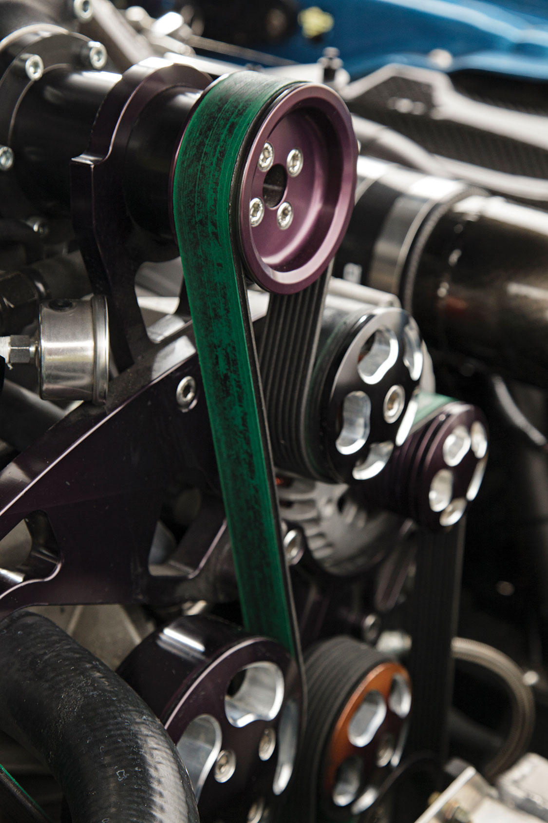 The amount of work and money invested in this 1980 Pontiac Trans-Am is significant. Reikkoff can point to over $125,000 in receipts covering every system in the car. That starts with a Wegner Motorsports 416-cu.-in. LS3 engine with CNC-ported LS9 heads fed by a Lysholm 3.3-liter supercharger. Oiling is provided by a custom Dailey Engineering dry-sump system. Long tube headers and a custom exhaust make the noise that announces that this Firebird has hit the 1000-bhp mark.