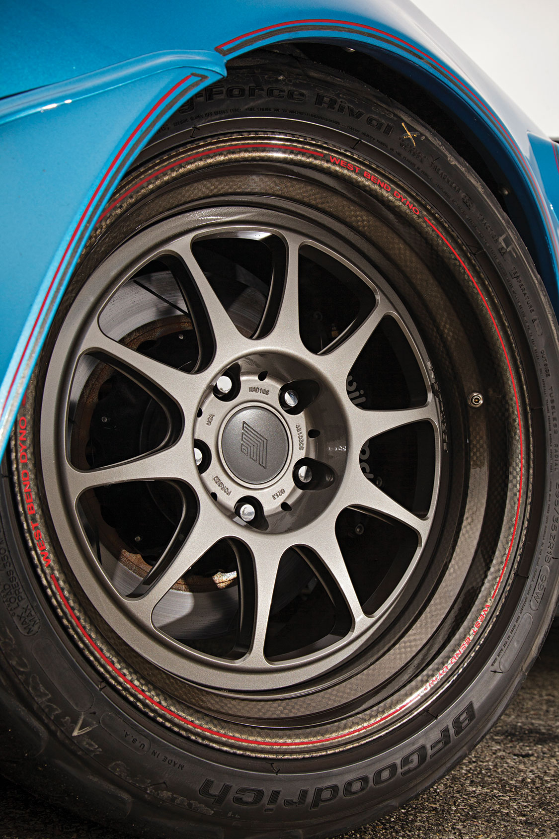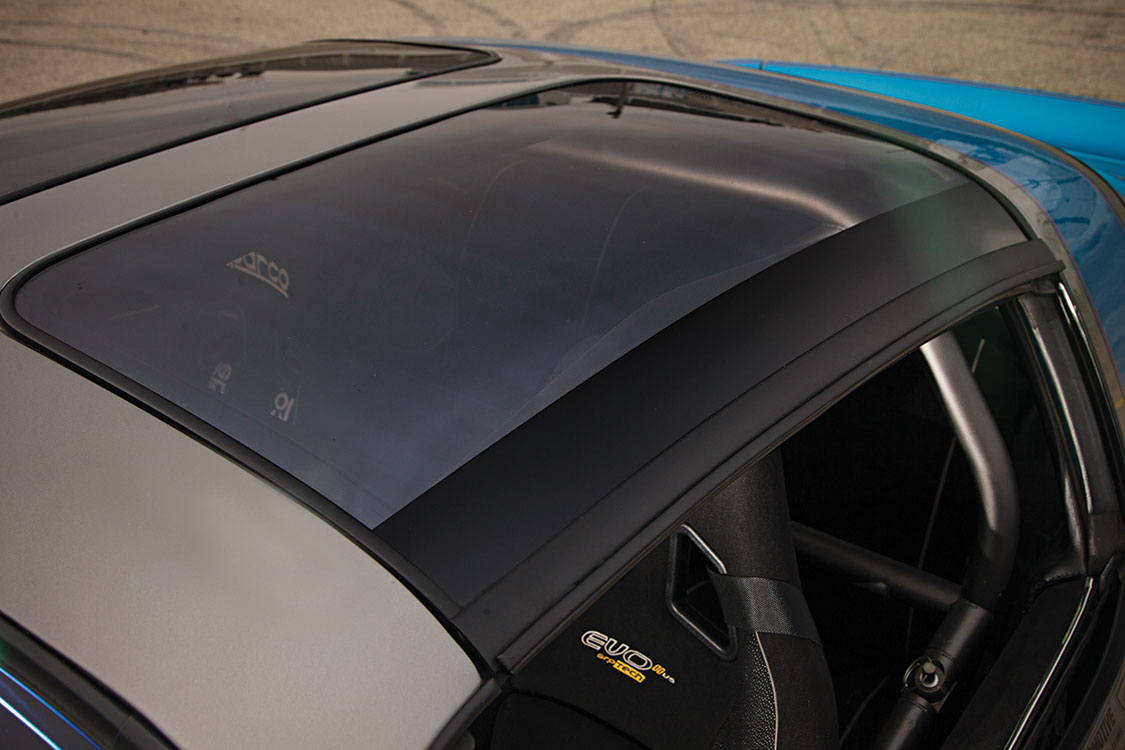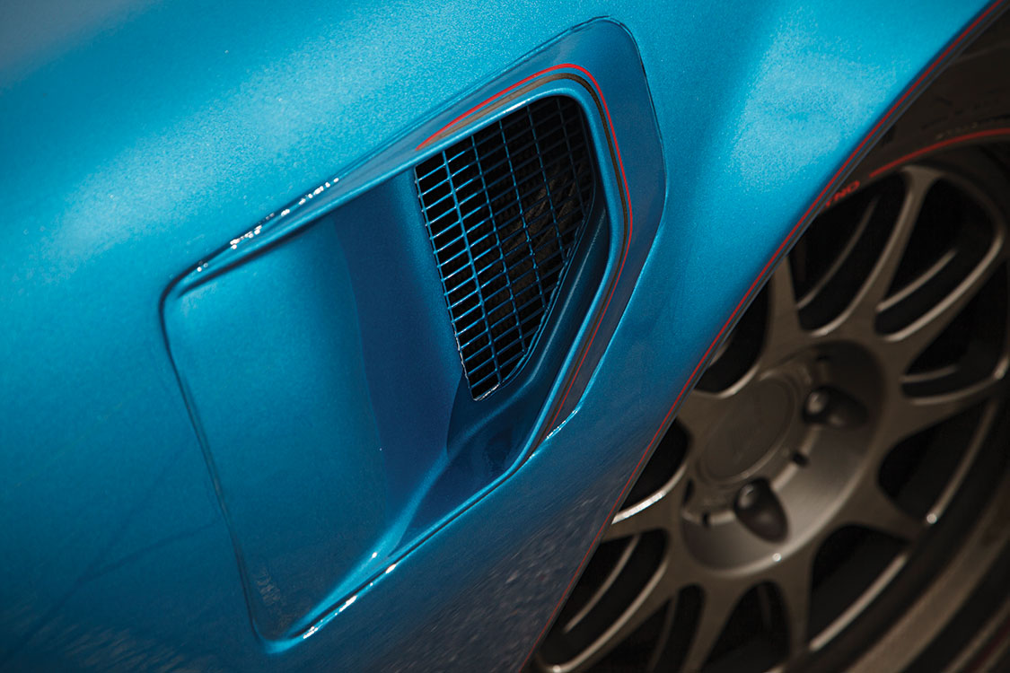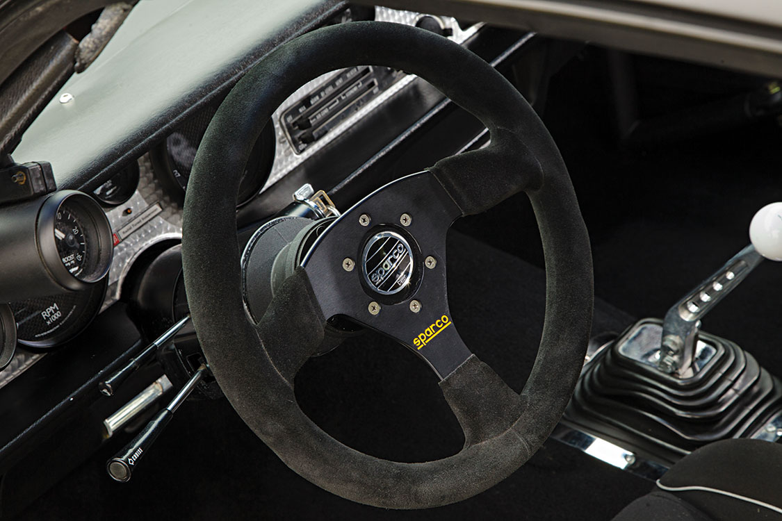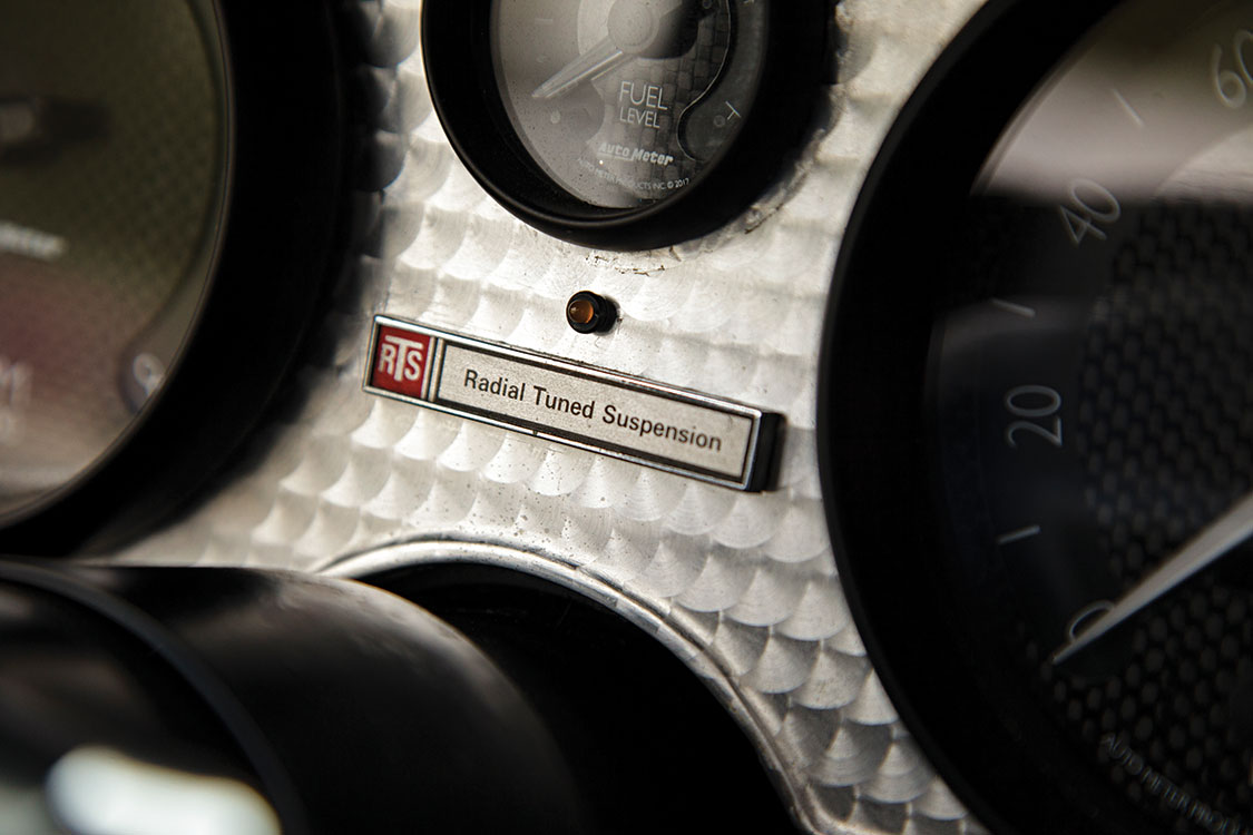 “The coolest thing is it still had the Kewaskum Indians parking sticker from my high school in the rear window. It’s still in there today. Anyhow we took that and we slowly built it up to what it is now. You name it, we did it—from the carbon-fiber fenders and doors to the motor, drivetrain and frame. We did everything ourselves, as a shop. That’s the short version of the story,” Reikkoff says.