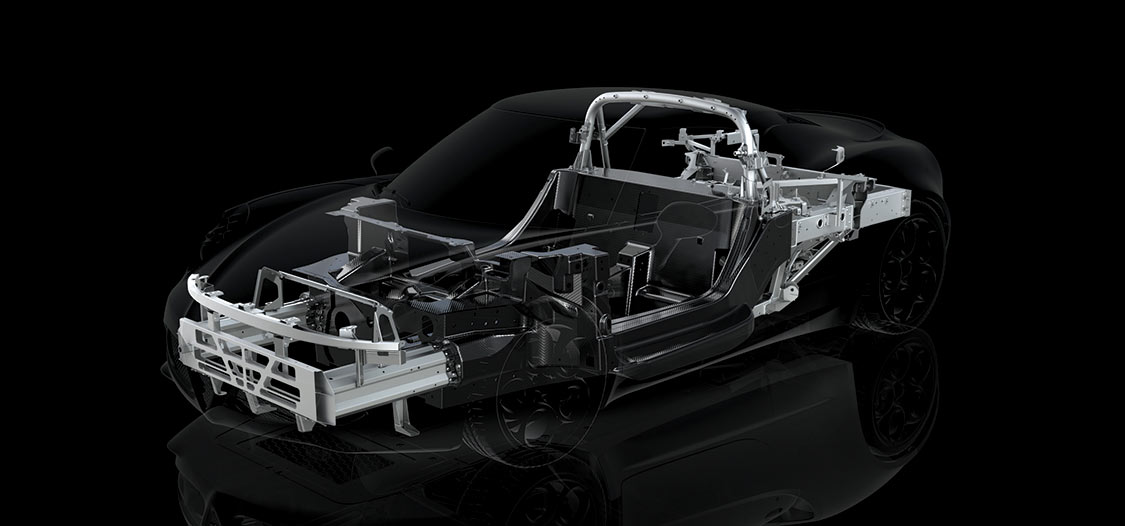 It’s no secret that excessive weight is the enemy in any car with sporting pretensions, be it an American muscle car or a high-strung Italian exotic. With that as part of the 4C’s engineering brief, Alfa Romeo’s design team started with a stiff, strong, but light structure. The 4C’s chassis is a combination of state-of-the-art high-tech materials of extraordinary stiffness and strength—much of the chassis tub is carbon fiber, formerly found in cars costing three to 10 times as much as the 4C—provide the 4C with a monocoque that weighs a scant 143 pounds. To maintain its low weight, the front and rear structures of the chassis and the roof reinforcements are made entirely of aluminum.
