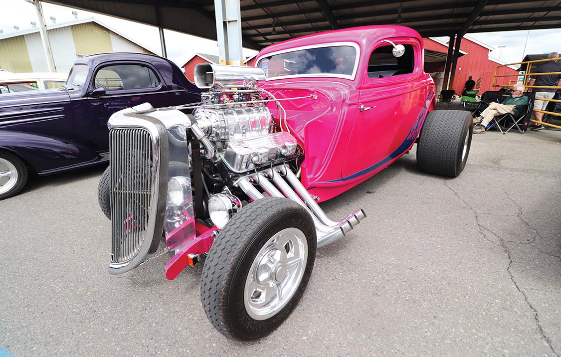 Everett , WA’s Troy Rimstad’s ’34 Ford Coupe isn’t defined by its HOK Hot Pink Pearl color, but instead by its blown 461 backed by a Turbo 400Troy Rimstad’s blown ’34 Ford Coupe personifies its hot rod heritage.Edmonton, Alberta’s Bruce Douglas has logged over 35,000 miles in his silver 383-powered ’32 Ford Tudor, a testament to its reliability.