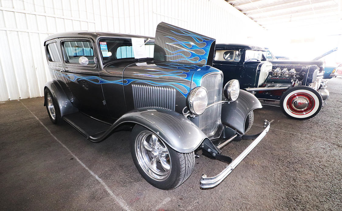 Just the right color and stance on Don Sangster’s fenderless ’32 Fordor from Wenatchee, WA.