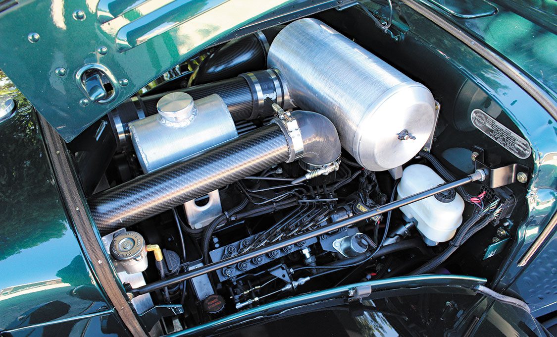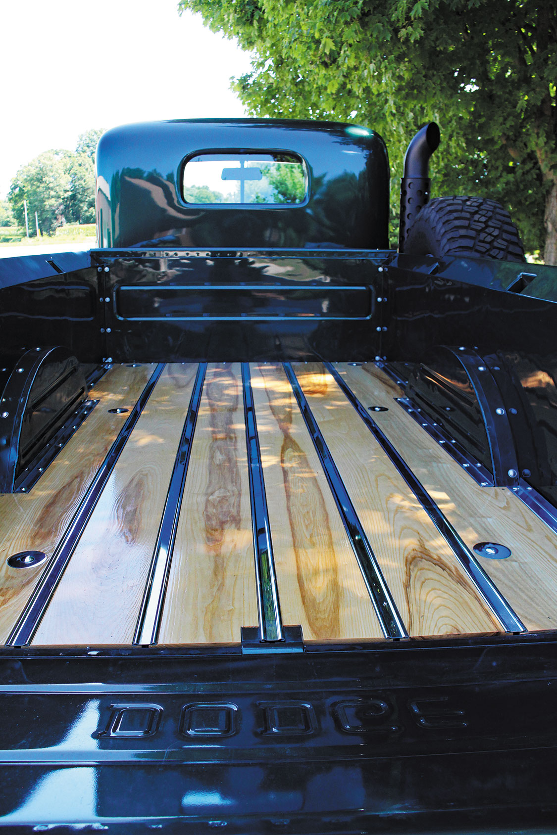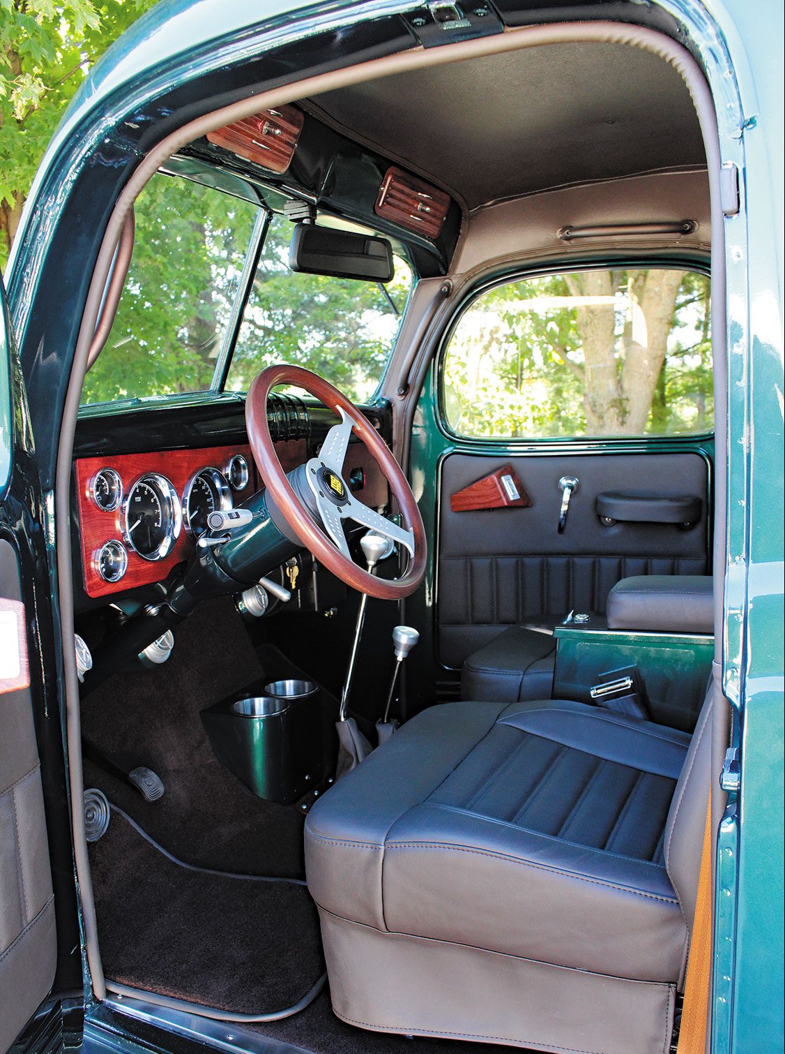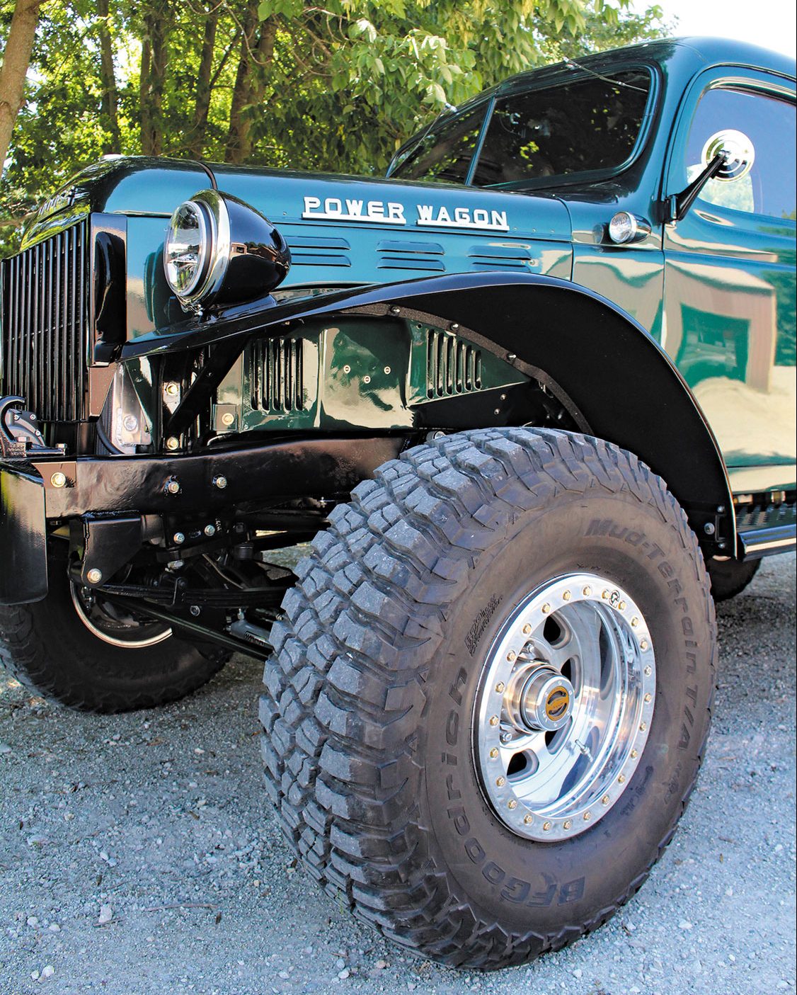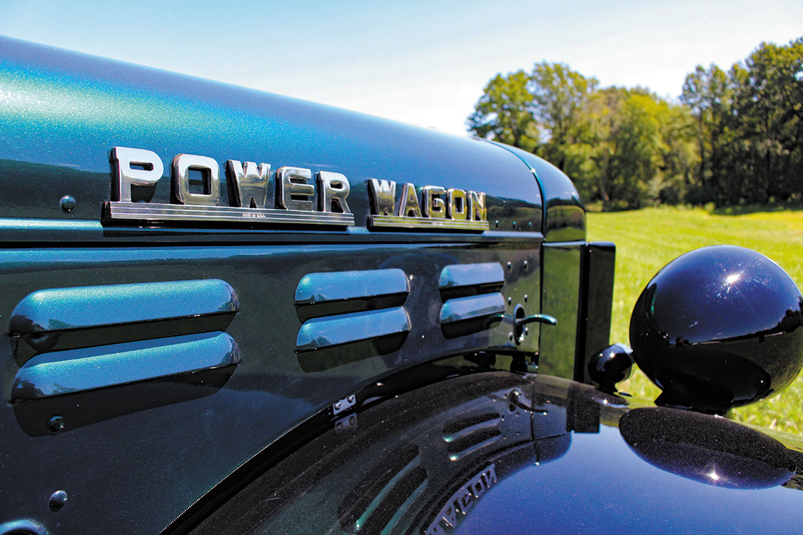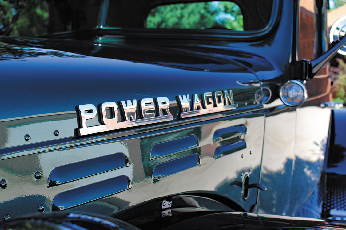 The cab-off restoration, powertrain swap, and drivetrain upgrades all took place at Conrad’s Kingman, Indiana facility, with most outsourced work on select components and pieces primarily being performed at local businesses. The Power Wagon’s original frame was powdercoated and modified to accommodate repositioned motor, transmission, and fuel tank mounts, along with relocated leaf spring brackets. PPG provided the base paint that’s about as close to the old Ponchartrain Green as they come.