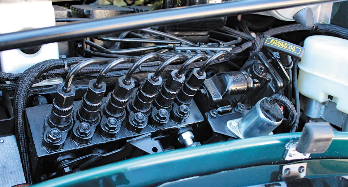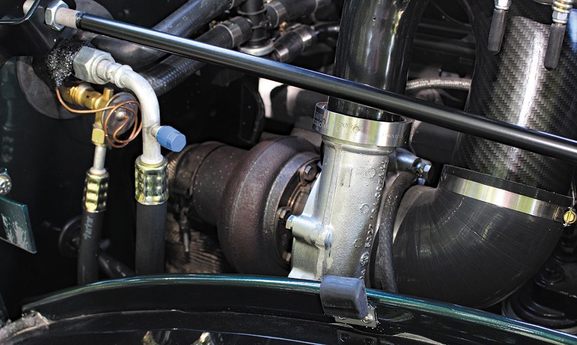 Starting with a 470,000-mile running donor, the ’96 model year Cummins was torn down for a full-on refresh. The block checked out OK but a crack in the head was all the convincing needed to source a brand-new one, complete with 60-lb valve springs, from Phil’s Automotive Machine Shop in Danville, Illinois. From there, six new stock replacement pistons from Mahle went in, along with fresh bearings, seals, and gaskets from top to bottom. The engine’s fuel system was also renewed thanks to six remanufactured injectors and the P7100 being treated to a considerable advancement in timing, a custom grind fuel plate, and higher rpm governor springs. A 63mm S300 SX-E turbo from BorgWarner handles boost production and spins to life quickly.