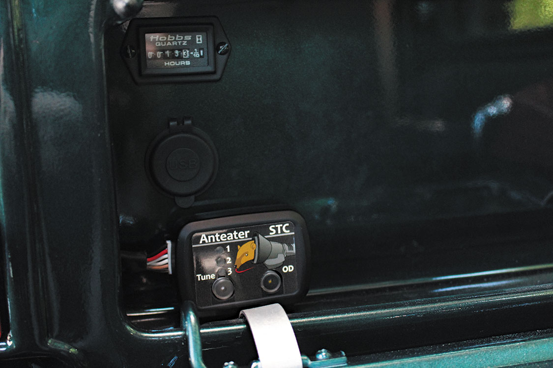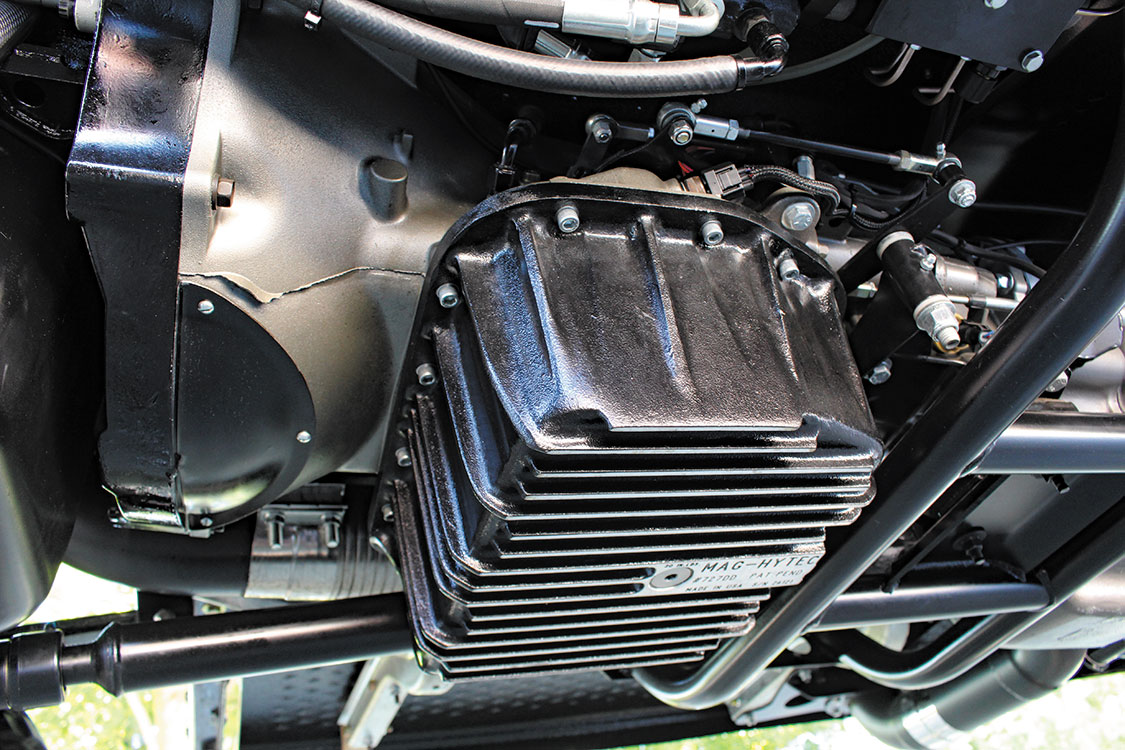 Building a 47RE that would never flinch under the load of 700 lb-ft of torque and the strain of turning 39-inch mud terrains, the second-gen-derived four-speed was reinforced throughout, equipped with a RevMax Stage 5 triple-disc converter and high-pressure valve body, and topped off with a Mag-Hytec deep pan. An Anteater Classic STC transmission controller from Firepunk Diesel allowed the guys at J.B.’s 4×4 to dial in the automatic’s shift points, as well as its lockup and Overdrive strategies. Thanks to a first-gen donor, an NP205 transfer case is married to the 47RE, along with an E-brake assembly from Moonshine Mafia Motorsports. Custom length driveshafts from Patterson Driveshaft send power to the front and rear axles.