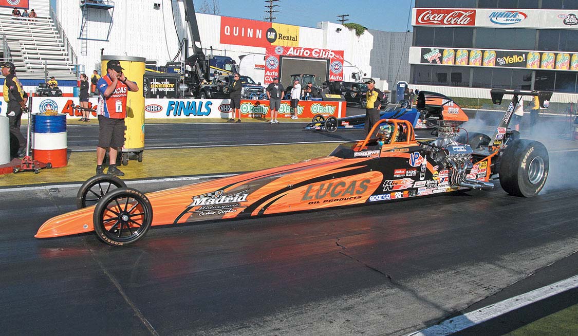 On Nov. 7-10, 2013 the 49th annual NHRA Finals were contested at the Auto Club Raceway in Pomona, California. This event saw champions crowned in 11 classes, including the four pro classes of the NHRA Mello Yellow Drag Racing Series, six classes of the 2013 Lucas Oil Drag Racing Series and four classes in the Summit Racing Series. More than 500 racers came from geographic divisions around the United States. They represented the best in 14 classes, competing not only for a Finals event win, but also for the NHRA Mello Yellow Drag Racing Series Championship. The weather was perfect, temperatures in the mid to high 70s with evenings cooling off to mid 60s produced a very fast track.