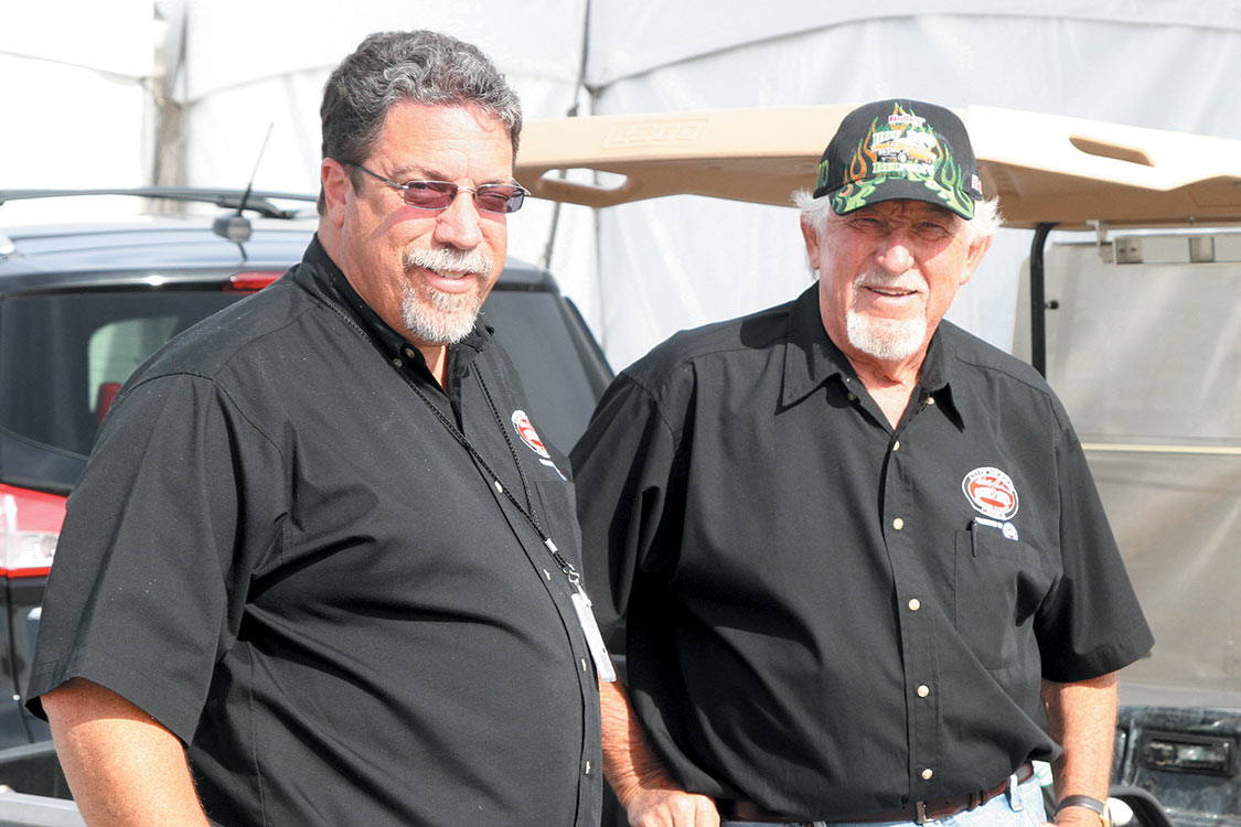 Wally Parks NHRA Museum Director Larry Fisher (R) with Steve Gibbs.