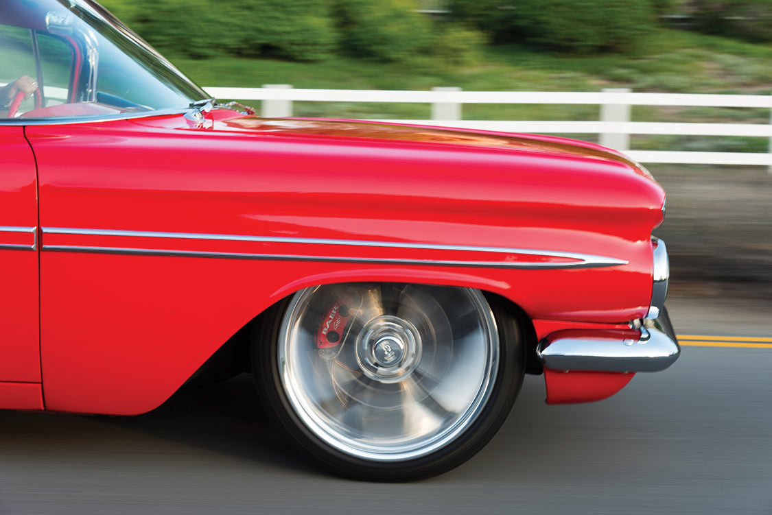 There’s always risk when stepping out of the mainstream. Unlike building a ’57 or ’62 Bel Air, parts and practices for a ’59 or ’60 are rare and mostly untried. “It wasn’t like you could call up a buddy and say, ‘How does this or that fit or will these items work?’ because no one I knew had done what I was trying to do.” Lev said. The first step was to sort out the mechanicals. He went to Don Hardy, a trusted friend and engine builder for a recommendation. Shortly after, a Corvette Grand Sport LT4 motor was delivered. However, before dropping it into place, the block was cleaned and painted PPG Torch Red to match the body. While this was in progress, the body and frame were separated and the old Chevy underpinning was powder coated. From here the progress really got interesting.