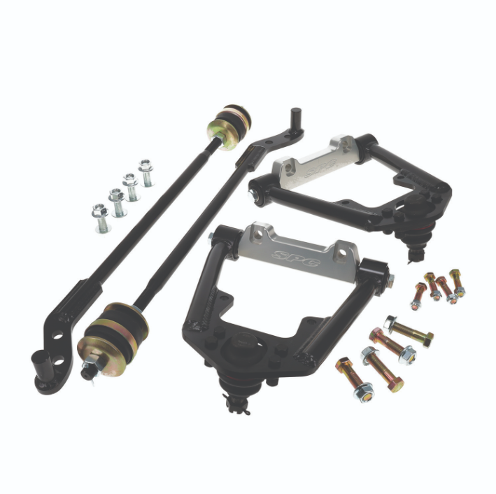 Update ’68 to ’73 Ford and Mercury front suspensions by installing this pair of adjustable upper control arms from SPC. Each arm has a built in +3.00° of caster to improve return-to-center with modern radial tires. The camber curve has also been optimized by utilizing the ‘Shelby Drop’ geometry in the billet aluminum cross shaft. Arm pivots are maintenance-free xAxisâ„¢ Sealed Flex Joints for tight, responsive handling. Camber can be set to -2.00°, -1.00°, or 0.00° for superior cornering, and kit includes .25° and .50° shims for fine-tuning. The adjustable caster rods feature high durometer OE-style bushings to protect the chassis mount and allows for easy caster adjustment, similar to later model Ford vehicles. These arms can be used with either an OE style spring/shock or an aftermarket coilover kit. Arms feature a stock style ball joint and all of the required mounting hardware.