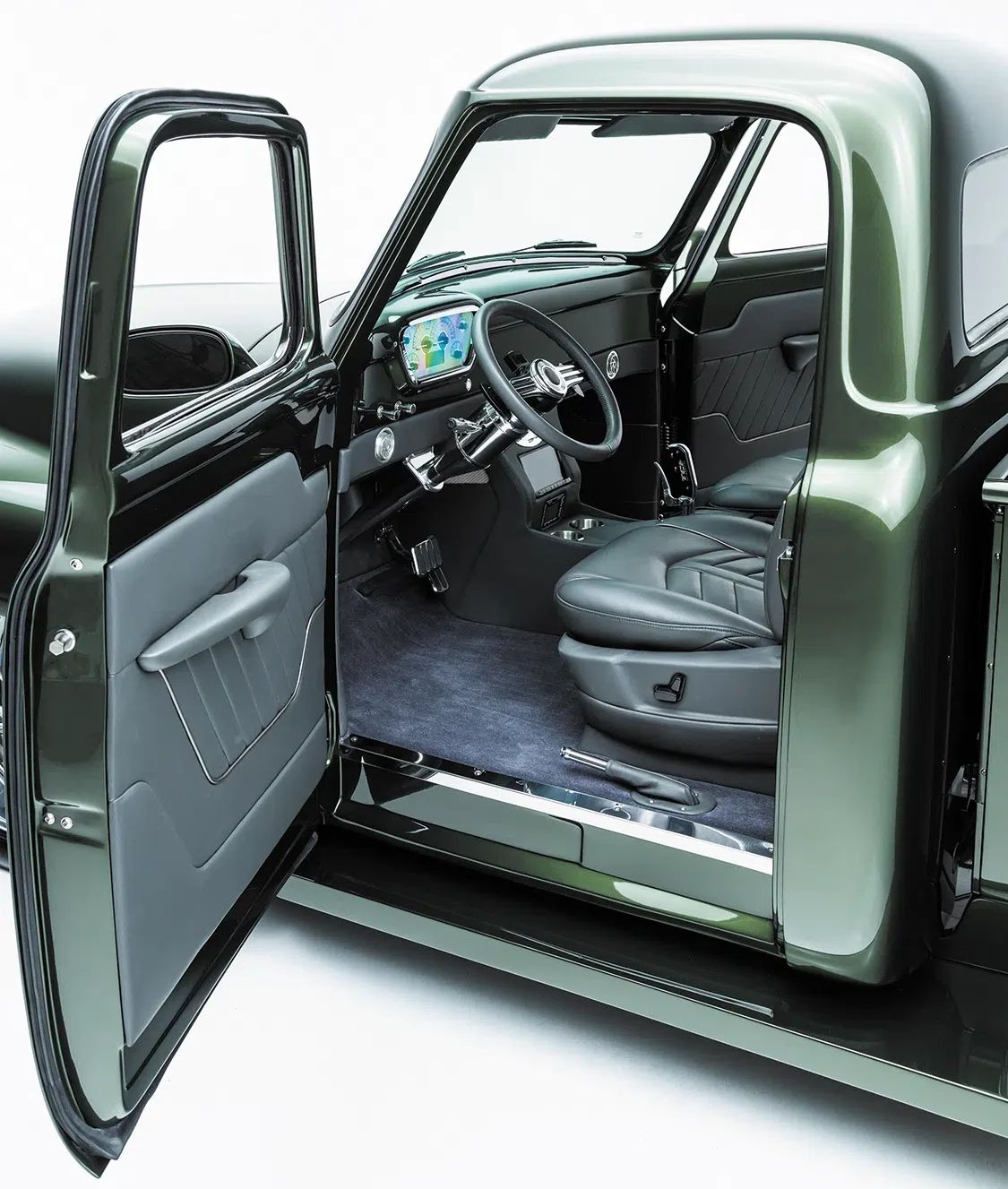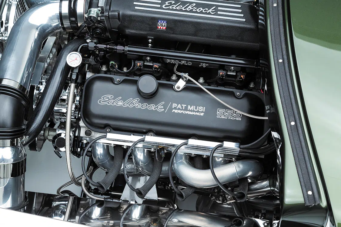 As you can imagine, a ton of work went into all of the body modifications and getting the body absolutely perfect, which the PPG Envy Green paint shows off beautifully. You’d almost forget that there’s more to see of Gilbert’s F-100 – a lot more! For example, there’s the brilliantly finished Edelbrock/Musi 555ci Chevy crate engine that has been topped with an Edelbrock Pro Flo EFI setup. Sure, we’ve all seen Chevy small blocks under the hoods of Fords over the decades, but you have to admit that a big block of this pedigree is an unusual yet awesome choice – especially with the 4L80E-based TCI Automotive 6x automatic transmission!