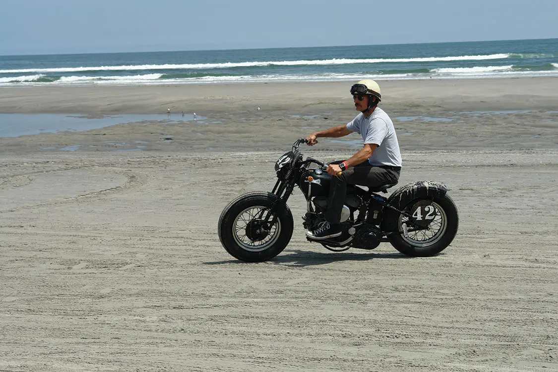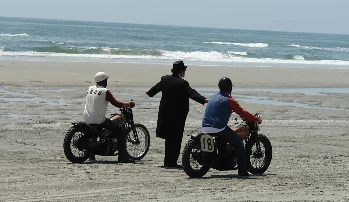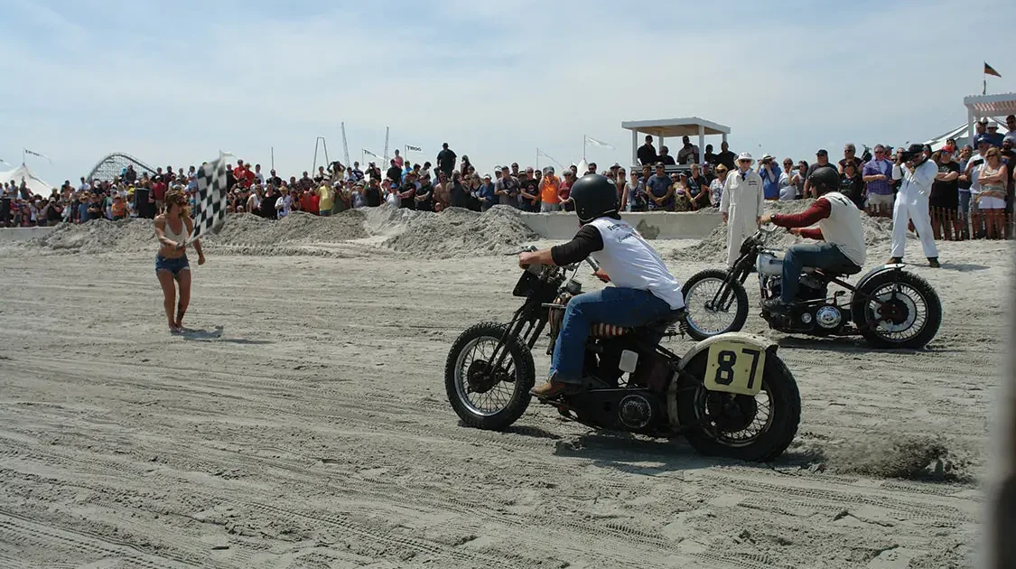 For so many reasons TROG is both unusual, and a car show to be imitated. It has the unique location of actually being on the beach, which sets a tone to the crash of waves – if you can hear them over the sound of vintage motorcycles, and the illustrious background of Ferris wheels, roller coasters, and the far-off New Jersey boardwalks. It almost gives one the impression of having stumbled into bike racing at Coney Island in the 1920s and 1930s.