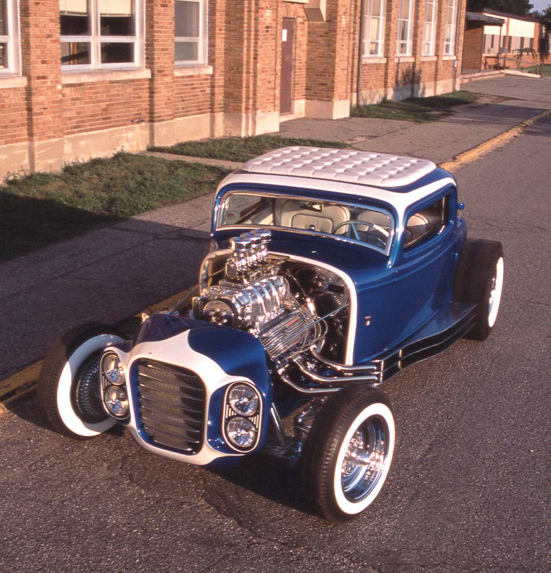 Today, the “Little Deuce Coupe” perfectly defines its era. The emphatic grille, unusual quad headlights and side strakes, never duplicated, are the car’s signature elements. Now rejuvenated in brilliant electric blue, re-lathered in chrome and paint scallops, and standing proud with its gleaming blown Olds motor, this once-upon-a-time $75 gas-station-hand-me-down has wonderfully come full circle. With a righteous pedigree including the A Brothers, Barris and Conway, and its starring role in the quintessential car-music album of all time, this 1932 is a proud part of hot-rod history as well as an enduring tribute to the boyhood vision of Clarence “Chili” Catallo.