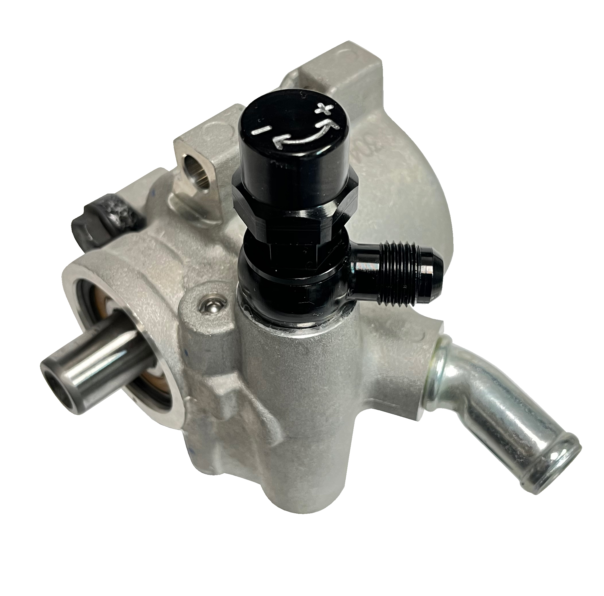 CPP developed a new adjustable flow control valve for the modern type II GM power steering pump. It allows you to adjust the sensitivity, or touchiness of the power steering at driving speeds. The valve has 9 positions that adjust the flow 1.75-3.75 gallons per minute. This adjusts the static pressure from 100-425PSI, by adjusting to a slower flow rate the amount of initial power assist can be reduced making a more natural feel at the steering wheel.