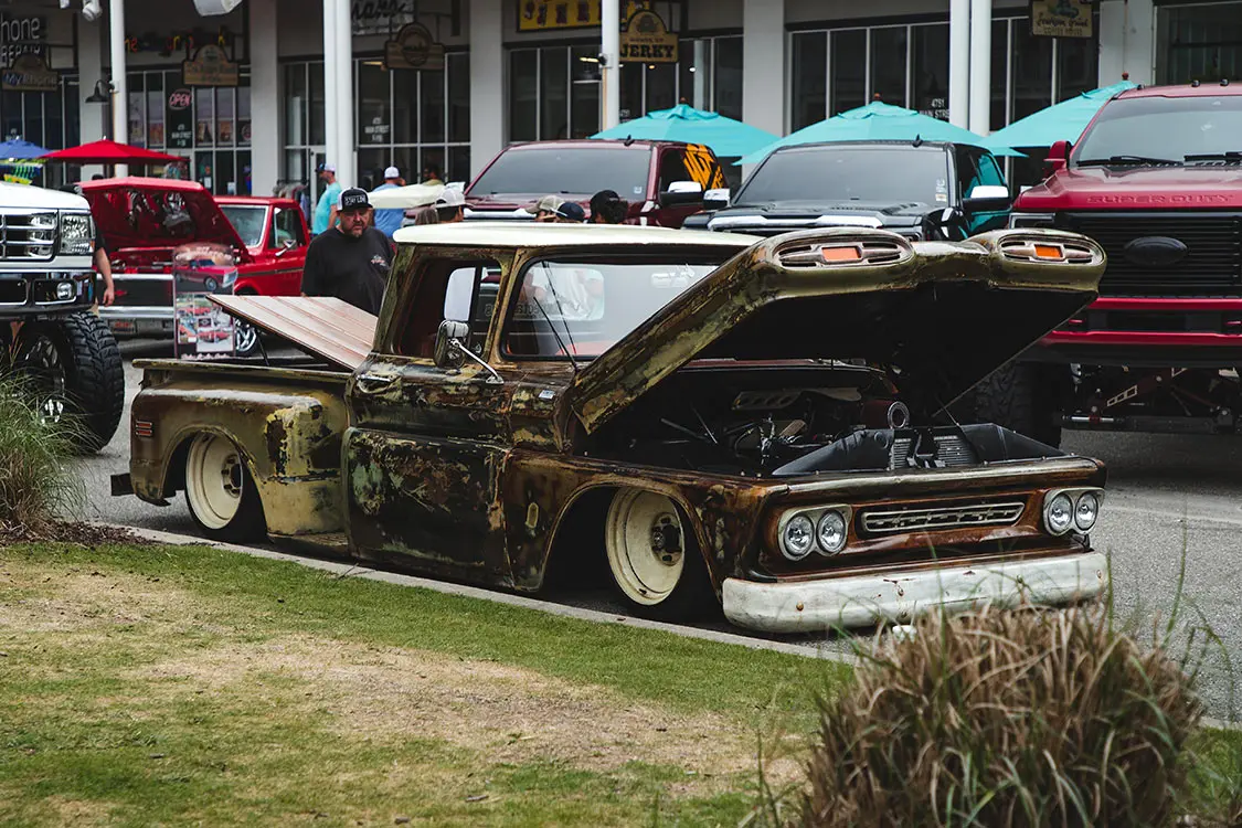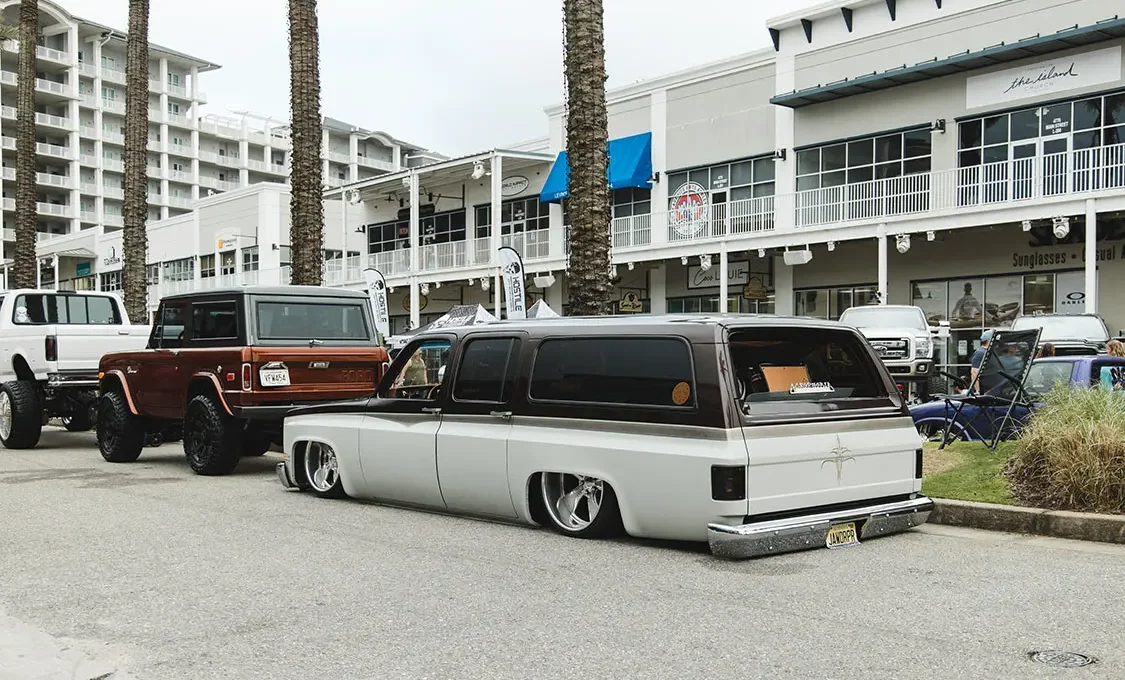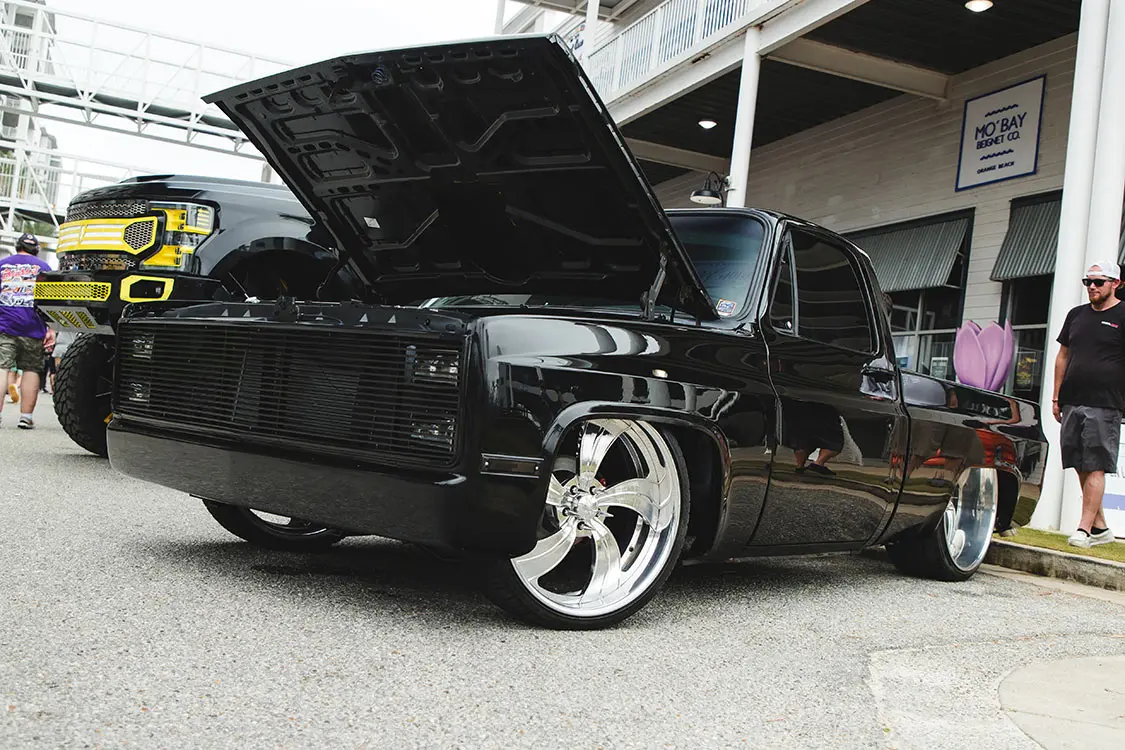 The Wharf at Orange Beach is just an awesome venue that has it all in one location. You can even stay on the grounds, which has restaurants, bars, and shopping for the family. Even though there is limited space, the show really does a great job at filtering show vehicles to ensure that there is plenty to look at all weekend. And the variety is top notch from both lifted and lowered custom truck enthusiasts.