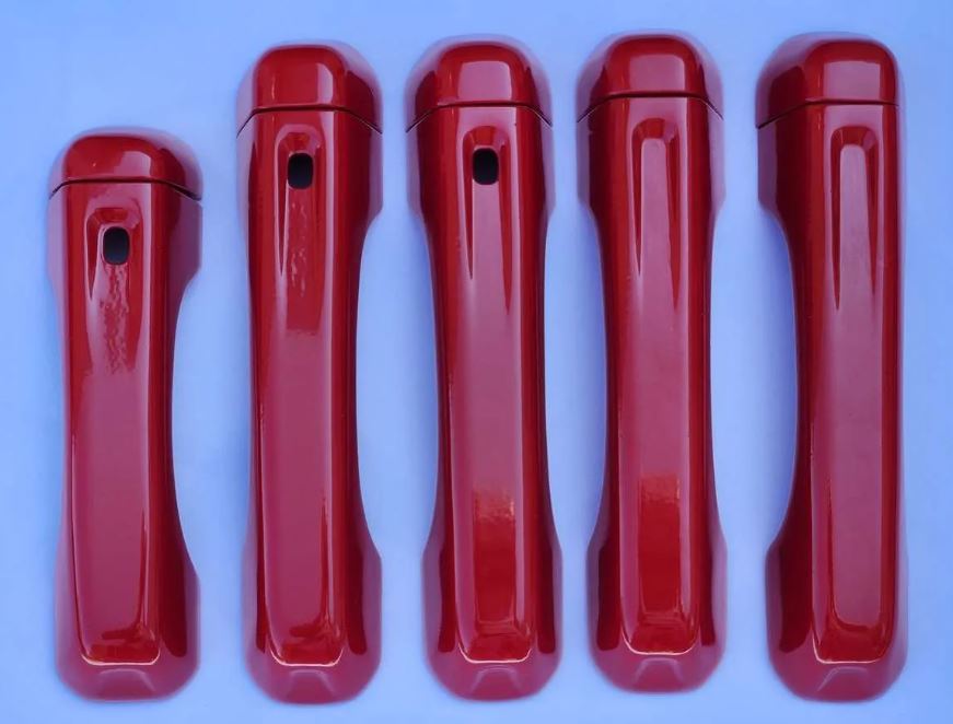 These door handles are made of high strength Aluminum and offered in premium powder coat finishes. They are designed to stand out from the black plastic and add color and quality to your Jeep. They also do not fade with UV light exposure like the OEM black plastic handles do. Beyond all that, the “hand feel” and user experience when climbing into your Jeep feels much more rugged, durable, and enjoyable.