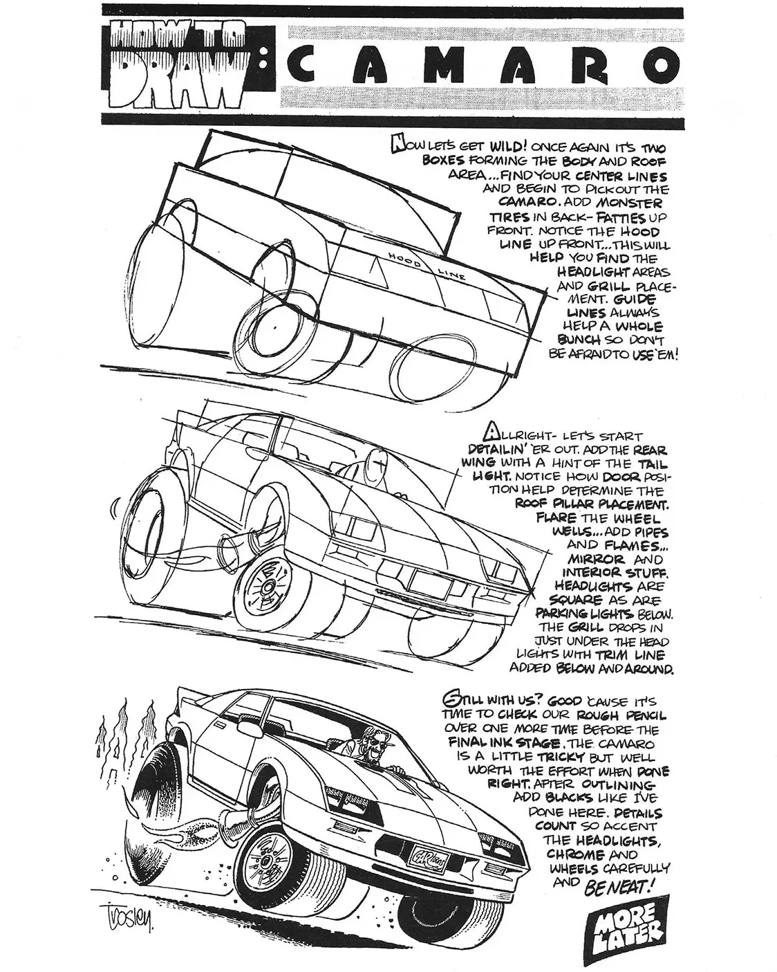 T: I presently produce a full page-color cartoon for STREET TRUCKS magazine, a two page ‘KRASS & BERNIE’ feature every month for CAR CRAFT magazine, and an episode of ‘DEUCE & PINSTRIPE’ and a how-to drawing lesson ‘TROSLEY’S SKETCHBOOK’ for the all-new CARtoons Magazine.