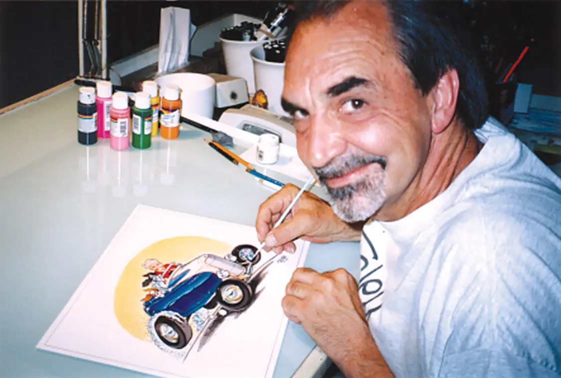 By his mother’s account, George started drawing at the age of five. Mostly on the walls at this time. Later, his fourth-grade teacher, who was an amateur artist, took notice and recommended private art lessons from a local painter. George and his brother, Harold, would spend time drawing their “dream machines”. They also built model cars. George would come up with wild customizing ideas and used plastic wood to mold parts from one kit to another. Harold had the model body-working talent to turn them into prize-winning creations. They would be inspired by car magazines, devouring them for new ideas. The two began winning almost every hobby-shop model contest around. They were eventually banned from a few.