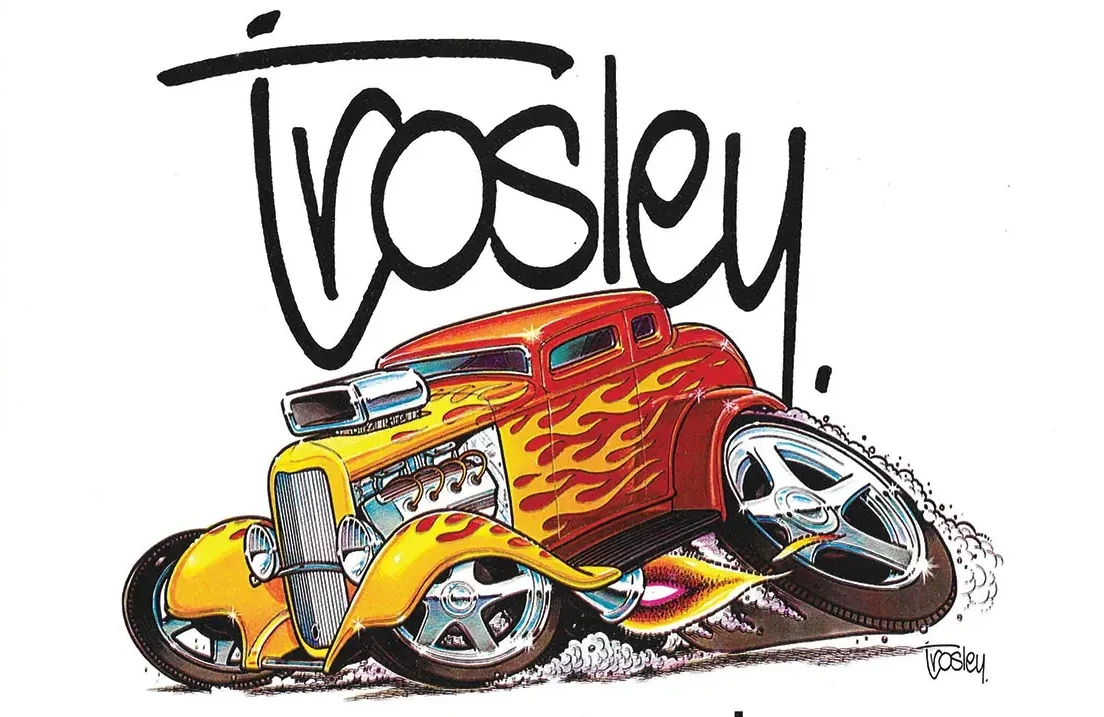 Trosley had early success as a freelance artist beginning with Krass & Bernie, a comic strip that ran continuously in CARtoons from 1975 until 1991. Trosley also produced many other features for CARtoons, including a regular “How To Draw” instructional series. In addition to the many automotive cartoons, illustrations and commercial work published, Trosley has produced adult-themed, satirical gag cartoons and comic strips for Hustler magazine and its sister publications Hustler Humor and Chic.