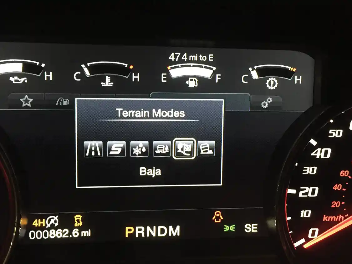 HE CONTINUES, “For Sport, Baja and Mud/Sand mode [those are three of the Raptor’s six driver-selectable drive modes; the others are Normal, Weather and Rock Crawl], we wanted a little bit of feel to the shift. The computer commands a higher trans fluid pressure, which fills the hydraulic circuits faster for a quicker shift.” Having experienced Sport mode for ourselves, we have to say that “a little bit of feel” is an understatement. The upshifts kick like a mule, and we love it.