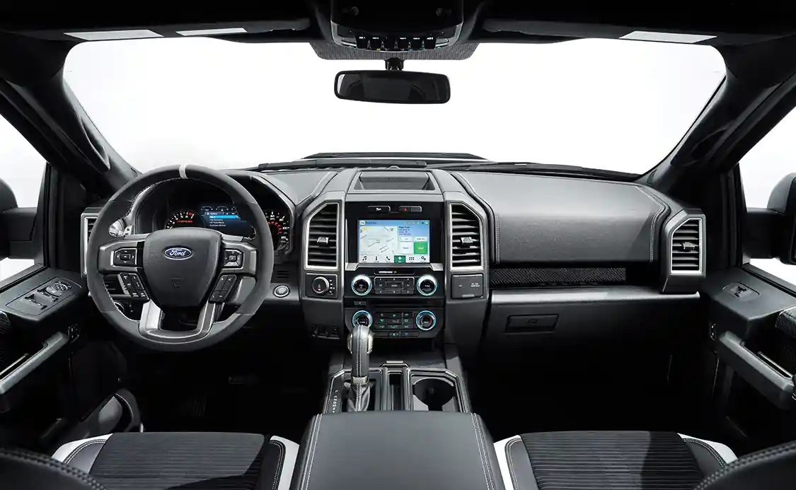 This V-6 is from Ford’s EcoBoost family, a line of twin-turbo engines introduced to provide V-8 power with closer-to-V-6 fuel economy. (Having towed heavy trailers in F-150s with both the 2.7 and 3.5L EcoBoost V-6s, we can attest to how well they work.) The Raptor’s engine is a 3.5L EcoBoost tuned up to 450 hp and 510 lb-ft of torque. That’s 75 hp and 40 lb-ft over the standard 3.5EB and, more importantly, 39 hp and 76 lb-ft more than the previous generation’s V-8-powered Raptor.