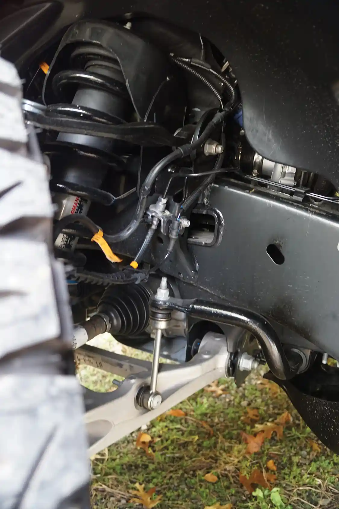 OBVIOUSLY, the Raptor’s mile- high stance is the exact opposite of the lowered look we like, but we have to admire the legitimacy—this is not an off-road poseur; it’s the real deal. The Raptor offers nearly 2 feet of wheel travel (13 inches in front and 13.9 inches out back), and the body and bumpers are shaped to increase its approach, departure and break-over angles. Like the old Raptor, the new one features factory-fit FOX shock absorbers, but they are larger, 3 inches in diameter as opposed to 2.5 inches in the old Raptor. They feature nine-stage bypass damping and integrated hydraulic bump stops. The BF Goodrich KO2 tires are designed for high- speed off-road travel, and the (optional) 17-inch forged alloy wheels do have actual bead-lock capability.
