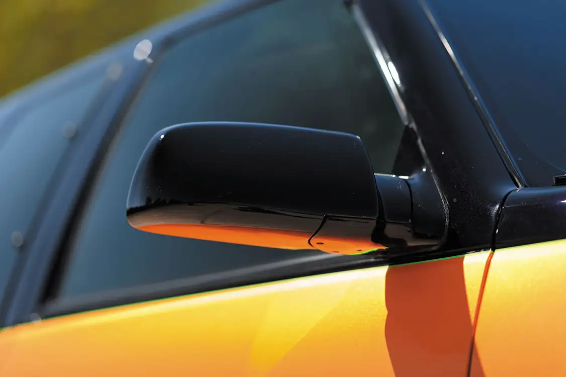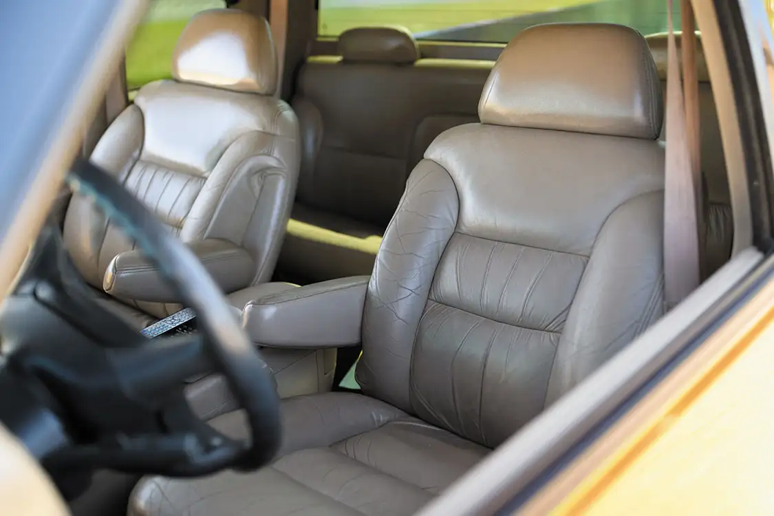 This Silverado sports a front grille and headlights from a 2000 Cadillac Escalade, giving it a cool, modern look. The bumpers are from a 2000 GMC Sierra 1500, which adds to the custom vibe. Ben shaved the third brake light and tailgate handle, added Cadillac taillights, and custom rear wheeltubs with a bridge in the bed to clear those big wheels. The truck’s paintjob is unique, with Lamborghini Arancio pearl orange Tricoat layered in black pearl, and all PPG paint applied by Ben and Heath.