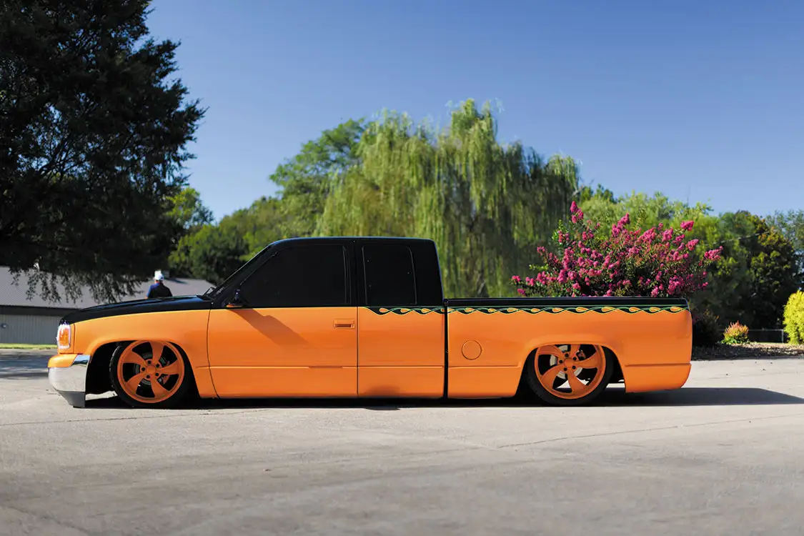 When it comes to custom trucks, Ben Jackson from Owensboro, Kentucky, knows how to turn heads. As an autobody refinishing technician, Ben’s got the skills and vision to create something truly unique. His 1996 Chevy Silverado, an awesome orange and black OBS, is a testament to his passion for cool pickups.