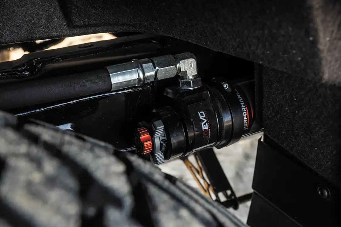 The Bink GX550 wasn’t built just to look good—it had to perform. The first step was dialing in the suspension to handle both rocky trails and long highway miles. A Fox Performance Elite 2.5-inch DSC Evo setup paired with Eibach rear coils gives the GX the clearance and ride quality needed for unpredictable terrain. Whether navigating technical rock climbs or stretching out miles of washboard roads, this setup ensures a smooth yet responsive ride.