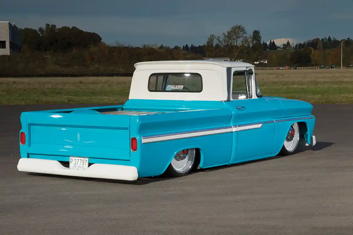 Mike Amborn of Vancouver, Washington, had big dreams for a ’63 Chevy C-10 he came across in 2012. It was a forgotten shop truck that some would have passed on, but Mike could see the potential and ended up striking a deal for what was left of it. After collecting body parts and rebuilding a Chevy small-block and 700R4, Mike was equipped to begin the project, much of which he tackled on his own. Mike did as much as he could in his own garage, including ’bagging the truck. When the first round of mods was completed in early 2013, he sent it off to a friend’s body shop for the second phase of the build.