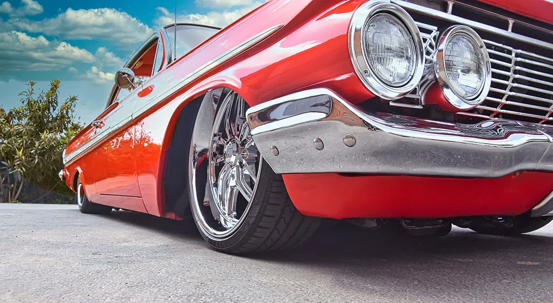 Cruise Industries started with a set of dual 485 Viair compressors and 2- 5-gallon FLO tanks coupled to ½ AVS brass valves to improve the reliability of the air suspension. 2,600 lb Slam Specialties SS-7 airbags provide the lift and also as the name sounds, slam the Chevy classic on the ground. Braedon and his crew fabricated some new front and rear shock mounts for better performance and drivability.