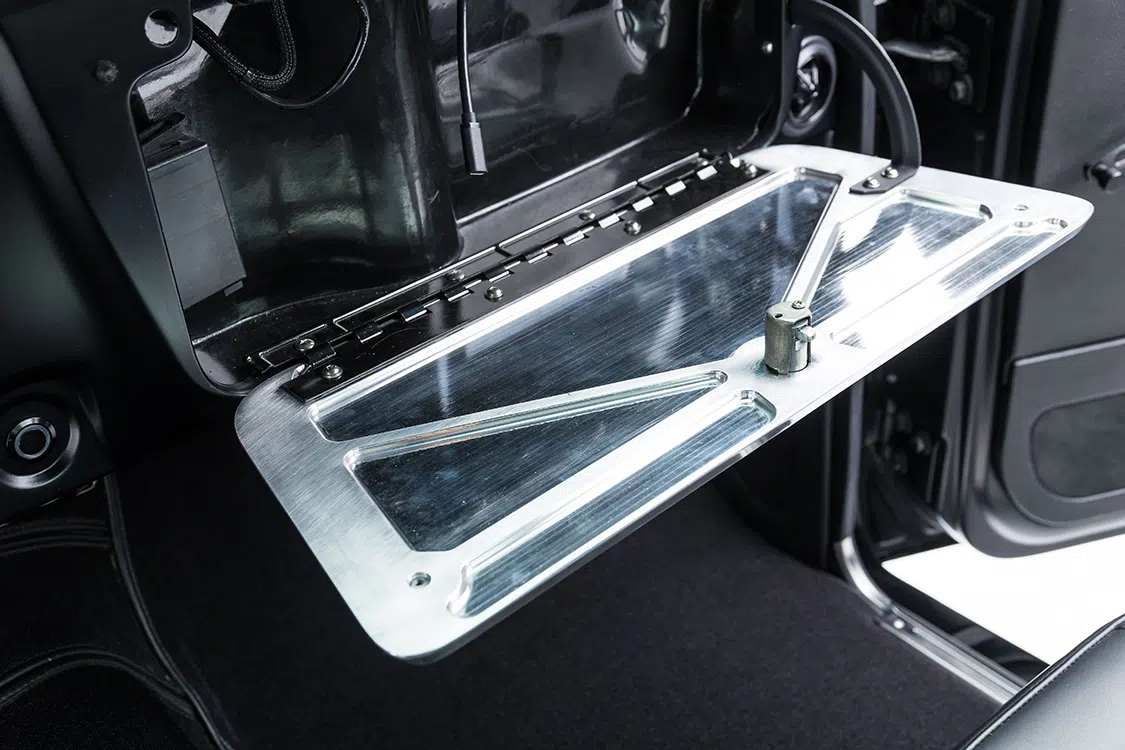 With the exterior, engine, and chassis turning out so clean, Brandon knew he had to give the interior the same level of love. The dash had some parts shaved and was modified for a cleaner look. The custom bench seat by McIver Custom Fab was frenched into the back of the cab while the headliner, dashpad, and door panels were custom built. All of the buttons were hidden while a phone charger, cup holders and a 4-inch sub make driving more comfortable.