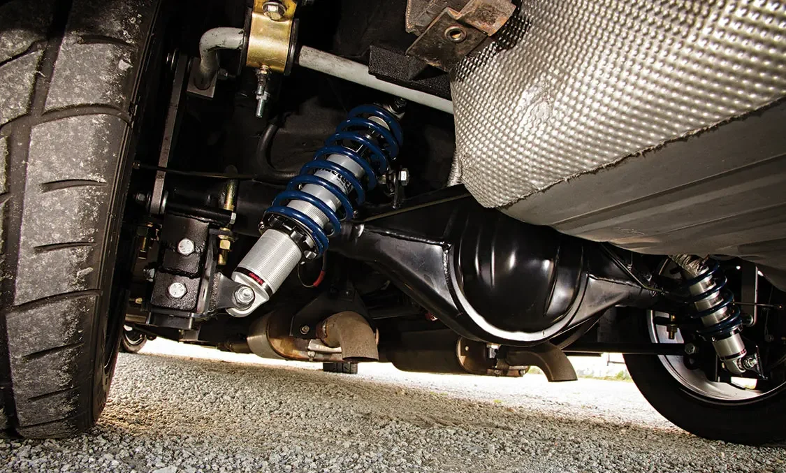 The plan took shape very quickly when Stuart came across an opportunity to mend the Cougar’s engine while also earning some extra style points. “Someone dangled a 4.6-liter dohc small-block out of a 1999 Mustang Cobra in front of my face, and I had to have it. It also came with a Tremec 5-speed manual transmission,” Stuart recalls. To make it all work, he ordered up a reprogrammed factory ECU and wiring harness from The Detail Zone, which allowed running the factory a/c system through the OE computer. Considering that he already planned on upgrading the antiquated front suspension with a Rod & Custom Motorsports Mustang II setup—a system that includes tubular control arms, coilovers and rack-and-pinion steering—the Cougar was suddenly taking on a fully modernized persona. Consequently, Stuart applied the same Pro Touring approach throughout the rest of the car by replacing the entire leaf spring rear suspension and driveline with a RideTech 4-link system, and a Currie 9-in. rear end fitted with 31-spline axles and 4.11:1 gears. Other chassis enhancements include custom subframe connectors, a Chassisworks rollbar and a Stam-Bar rear sway bar.