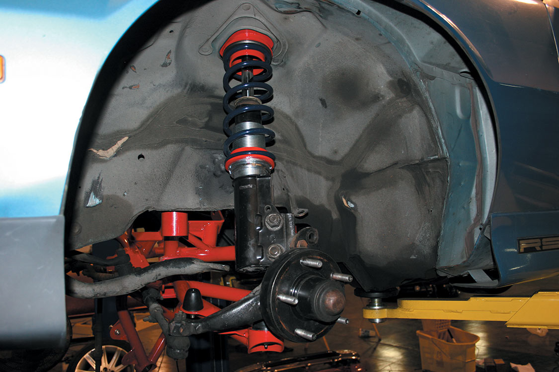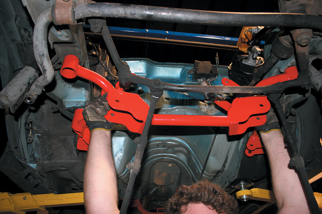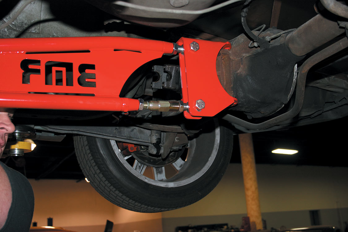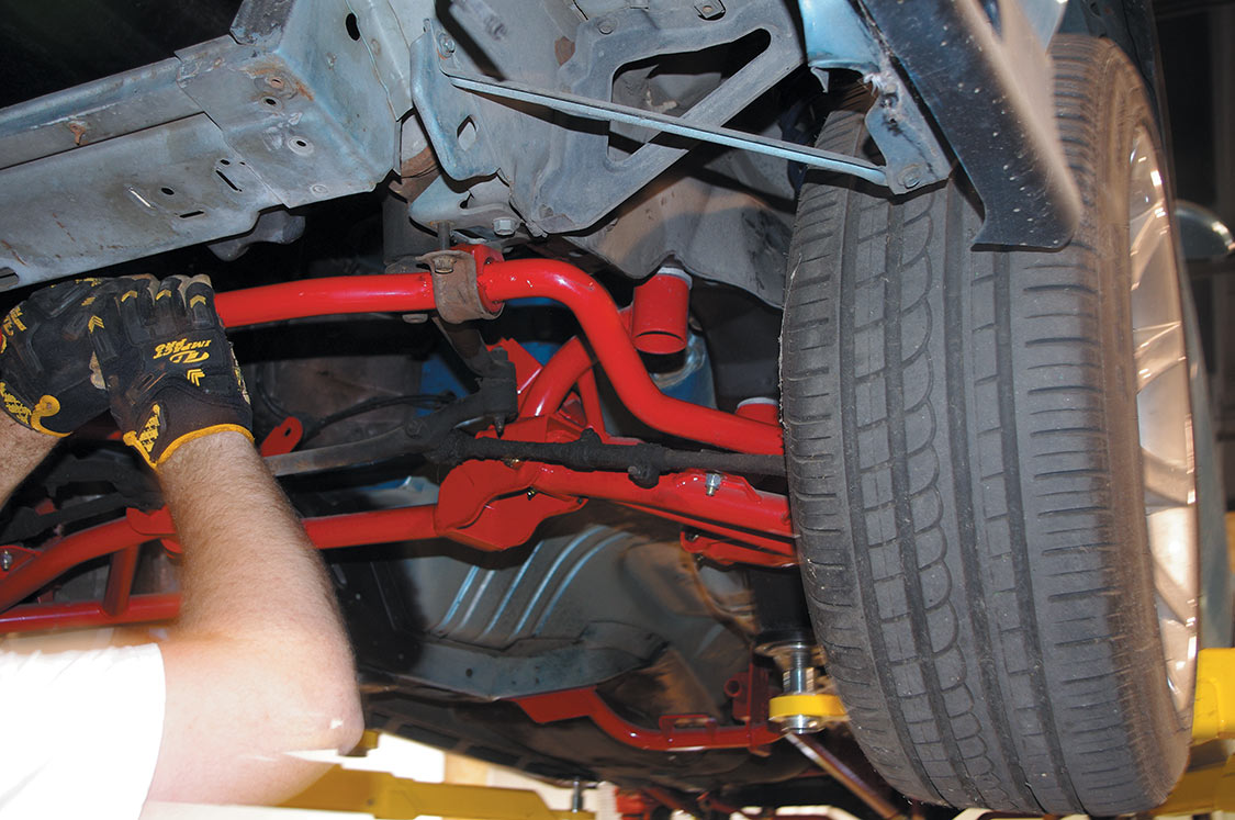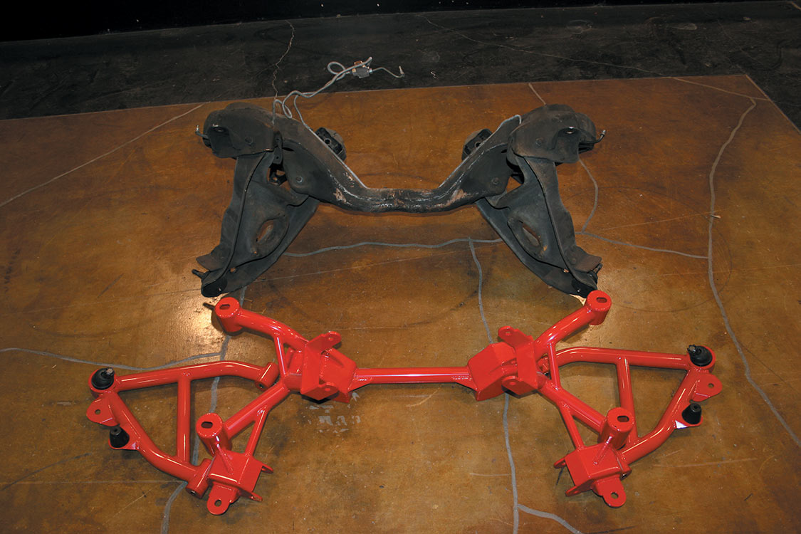 01.To transform the third gen Chevy Camaro’s suspension, BMR threw the book at it. Amongst the parts are a front K-member, control arms, coil-over conversion and larger sway bar with end links. The rear consists of a transmission cross member, adjustable torque arm, panhard bar, larger sway bar and adjustable trailing arms (not shown).02.As you can see, anything is an improvement for this wretched Camaro. BMR knows how to make it all better.03. All of the suspension is torn down minus the steering components. If your car looks as worn out as this, it’s surely time to upgrade your steering parts to complement the new suspension.04.Lucky for BMR, its Camaro does not have an engine or transmission to deal with, so it went ahead and removed the bolts to allow the factory K-member to drop free from the car. If your car is still operational, support the engine with a hoist and all will be well.05.Check out the difference in bulk between the stock pieces and the new BMR replacements. The BMR K-member drops 30.5 pounds from the Camaro, while the tubular control arms lose an additional 10 pounds a piece. That’s 50 pounds less weight on the nose of the car!06.The BMR K-member bolts right into all the factory holes and makes things much more accessible for future wrench time when the LSx engine gets planted under the hood.07. Hopefully you sharp-eyed readers caught the lack of coil spring pockets on the new control arms.08.BMR’s coil-over conversion slips right onto the stock (or many aftermarket) struts and does a much better job of allowing fine-tuning of the front suspension for superior handling characteristics.09.Much of what was taken off can now go back on, including the spindle assemblies.10. With everything all buttoned up, it’s easy to see how these stronger and lighter parts are going to help boost the Chevy’s turning prowess.11.Last but not least, the cold-formed, solid, 32mm sway bar is cinched in position. This bar is 40% more resistant to body roll than the popular 1LE bar.12. All that’s left is to slip in the sway bar end links and get to work on the rear suspension.13.The rear suspension parts require a slightly different approach. This time BMR left everything in the car and swapped each piece out one at a time.14. First on the list is the torque arm. It bolts to the axle using all factory mounting points and is fully adjustable to allow changes to the pinion angle as necessary to set up the car for desired performance.15.The BMR torque arm relocation cross member takes the mount off the transmission, eliminating the chance of breakage, and firming up the mounting point. Additionally, the cross member offers multiple mounting points for “instant center” height adjustments.16.Much of the Camaro’s rear suspension is comprised of stamped steel parts with rubber bushings that are easy to manufacture and allow plenty of deflection to make driving more comfortable at the expense of performance. All are getting dropped into the scrap pile.17.This kit replaces the upper panhard rod support and relocates the panhard rod, allowing enough room for dual 3-inch exhaust routing over the axle. New heavy-duty brackets bolt to existing mounting holes and lower the panhard rod while maintaining the correct geometry.18. BMR 1.25-inch drop springs are the ultimate solution for lowering your third generation F-body. The 160 lbs-in, dual-rate springs are engineered to provide optimal handling without sacrificing the ride quality.19. The panhard rod is responsible for centering the rear axle side to side in the chassis. BMR’s adjustable panhard rod is made from large-diameter 1.25-inch tubing and allows easy on-car adjustment.20.For the best of both worlds, these adjustable lower control arms have a quiet, poly-bushed end for the car and heavy-duty QA1 XR series rod ends on the axle side. With these, you’ll be able to eliminate wheel hop and improve traction.21. As you can see, these trailing arms can be adjusted on the car to perfectly square up the rear axle and wheelbase.22.Increasing cornering and decreasing body roll is this hollow, a 25mm sway bar that perfectly complements the front.23. What a difference a day makes. If this car actually ran, we’d be heading for the nearest set of super tight twisties!
