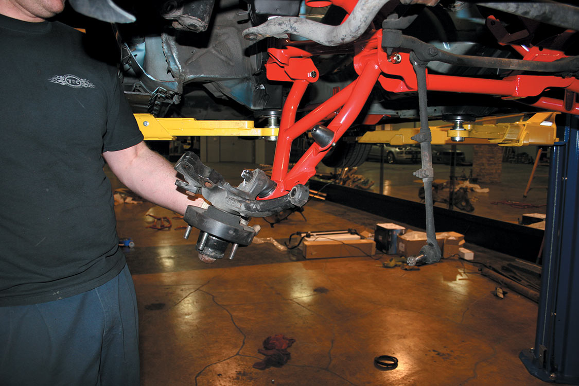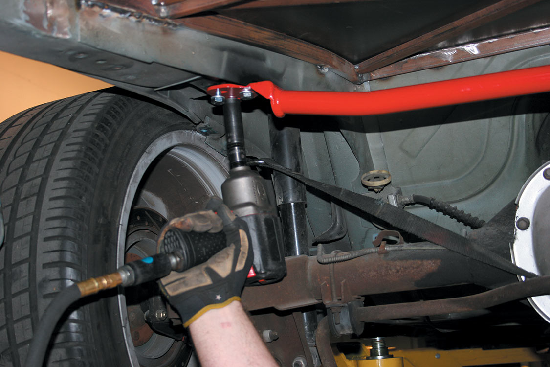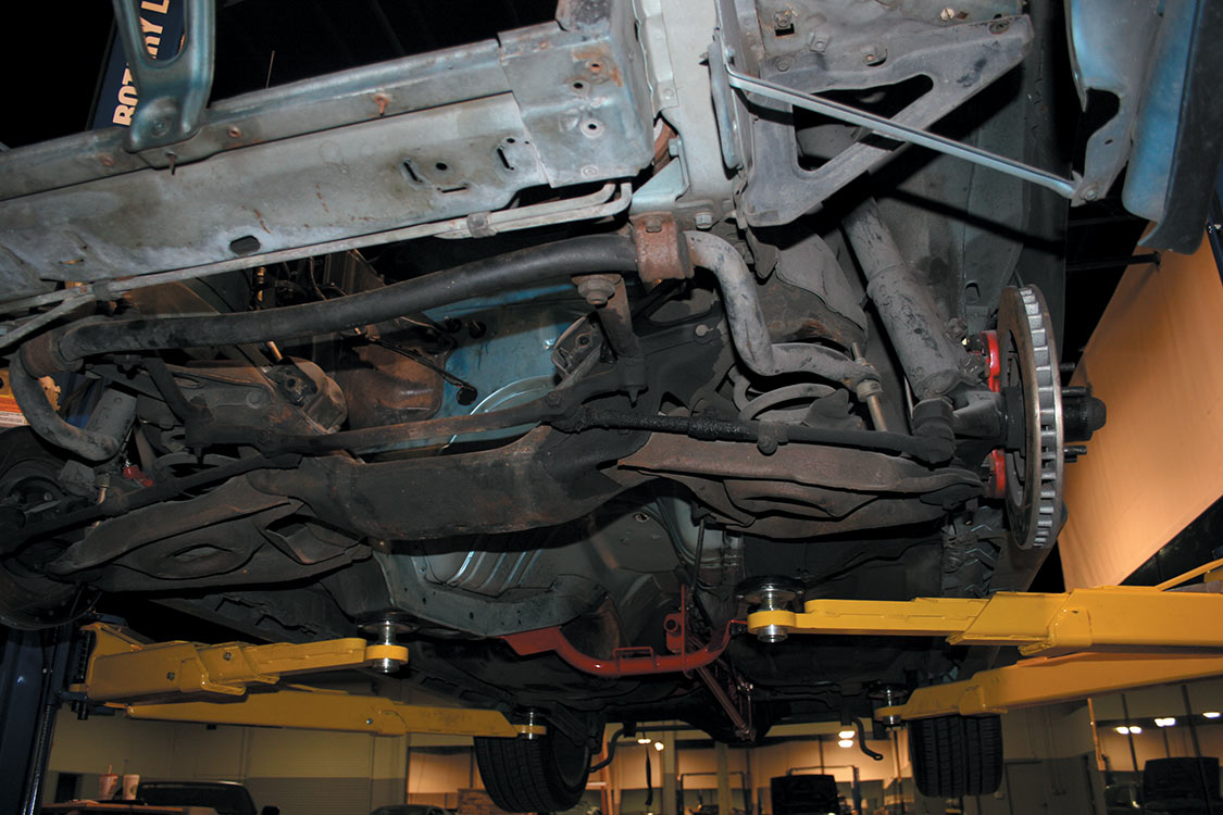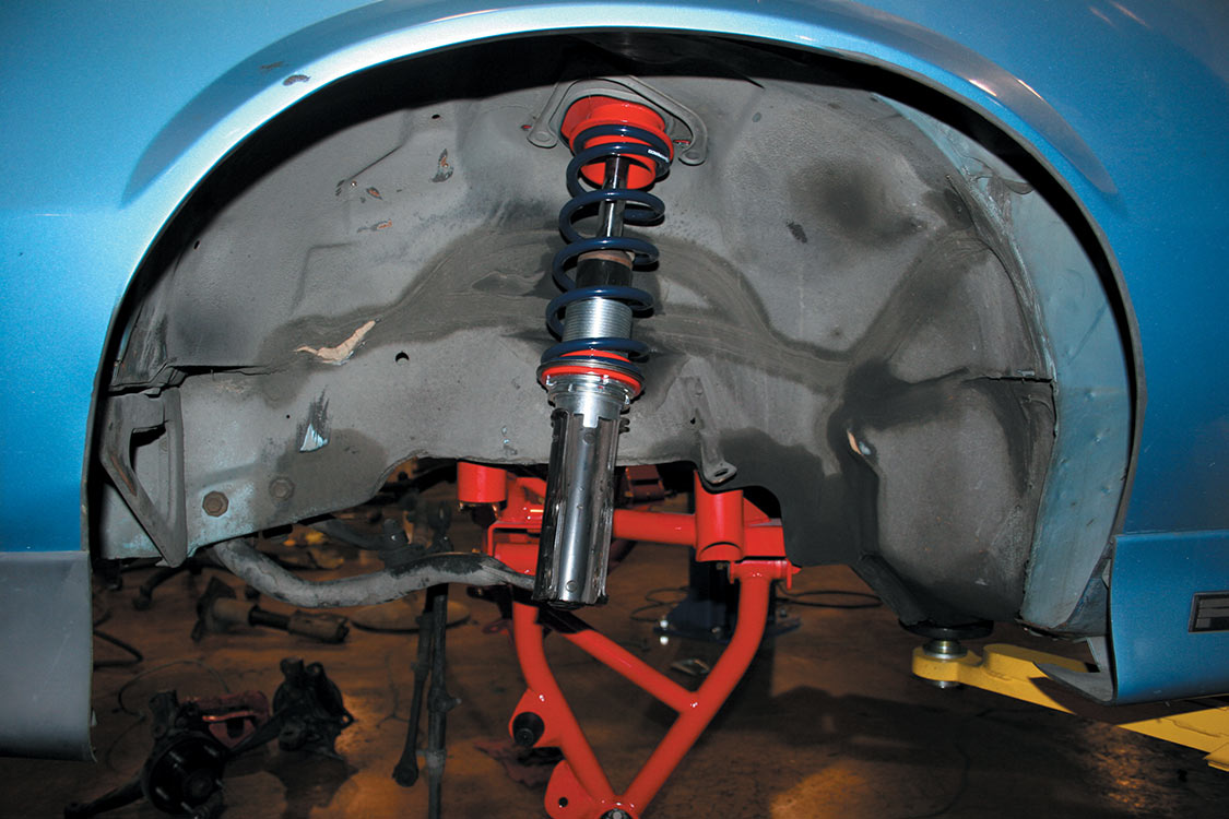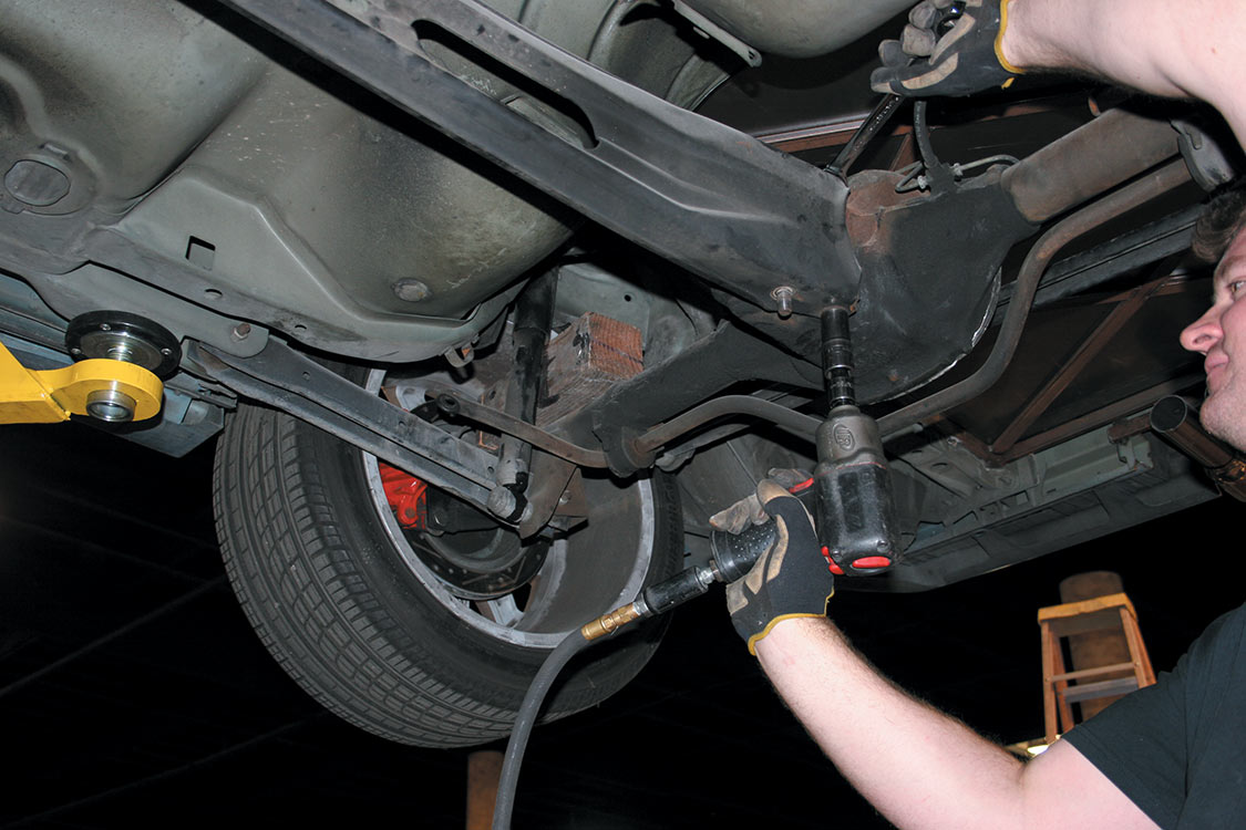 01.To transform the third gen Chevy Camaro’s suspension, BMR threw the book at it. Amongst the parts are a front K-member, control arms, coil-over conversion and larger sway bar with end links. The rear consists of a transmission cross member, adjustable torque arm, panhard bar, larger sway bar and adjustable trailing arms (not shown).02.As you can see, anything is an improvement for this wretched Camaro. BMR knows how to make it all better.03. All of the suspension is torn down minus the steering components. If your car looks as worn out as this, it’s surely time to upgrade your steering parts to complement the new suspension.04.Lucky for BMR, its Camaro does not have an engine or transmission to deal with, so it went ahead and removed the bolts to allow the factory K-member to drop free from the car. If your car is still operational, support the engine with a hoist and all will be well.05.Check out the difference in bulk between the stock pieces and the new BMR replacements. The BMR K-member drops 30.5 pounds from the Camaro, while the tubular control arms lose an additional 10 pounds a piece. That’s 50 pounds less weight on the nose of the car!06.The BMR K-member bolts right into all the factory holes and makes things much more accessible for future wrench time when the LSx engine gets planted under the hood.07. Hopefully you sharp-eyed readers caught the lack of coil spring pockets on the new control arms.08.BMR’s coil-over conversion slips right onto the stock (or many aftermarket) struts and does a much better job of allowing fine-tuning of the front suspension for superior handling characteristics.09.Much of what was taken off can now go back on, including the spindle assemblies.10. With everything all buttoned up, it’s easy to see how these stronger and lighter parts are going to help boost the Chevy’s turning prowess.11.Last but not least, the cold-formed, solid, 32mm sway bar is cinched in position. This bar is 40% more resistant to body roll than the popular 1LE bar.12. All that’s left is to slip in the sway bar end links and get to work on the rear suspension.13.The rear suspension parts require a slightly different approach. This time BMR left everything in the car and swapped each piece out one at a time.14. First on the list is the torque arm. It bolts to the axle using all factory mounting points and is fully adjustable to allow changes to the pinion angle as necessary to set up the car for desired performance.15.The BMR torque arm relocation cross member takes the mount off the transmission, eliminating the chance of breakage, and firming up the mounting point. Additionally, the cross member offers multiple mounting points for “instant center” height adjustments.16.Much of the Camaro’s rear suspension is comprised of stamped steel parts with rubber bushings that are easy to manufacture and allow plenty of deflection to make driving more comfortable at the expense of performance. All are getting dropped into the scrap pile.17.This kit replaces the upper panhard rod support and relocates the panhard rod, allowing enough room for dual 3-inch exhaust routing over the axle. New heavy-duty brackets bolt to existing mounting holes and lower the panhard rod while maintaining the correct geometry.18. BMR 1.25-inch drop springs are the ultimate solution for lowering your third generation F-body. The 160 lbs-in, dual-rate springs are engineered to provide optimal handling without sacrificing the ride quality.19. The panhard rod is responsible for centering the rear axle side to side in the chassis. BMR’s adjustable panhard rod is made from large-diameter 1.25-inch tubing and allows easy on-car adjustment.20.For the best of both worlds, these adjustable lower control arms have a quiet, poly-bushed end for the car and heavy-duty QA1 XR series rod ends on the axle side. With these, you’ll be able to eliminate wheel hop and improve traction.21. As you can see, these trailing arms can be adjusted on the car to perfectly square up the rear axle and wheelbase.22.Increasing cornering and decreasing body roll is this hollow, a 25mm sway bar that perfectly complements the front.23. What a difference a day makes. If this car actually ran, we’d be heading for the nearest set of super tight twisties!