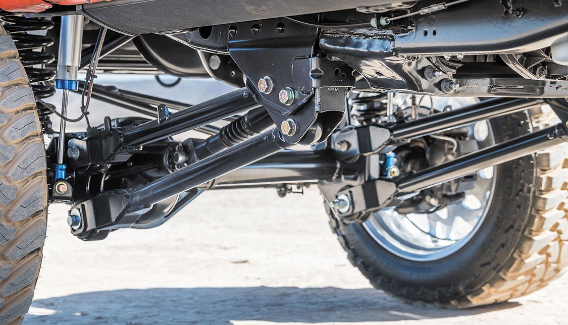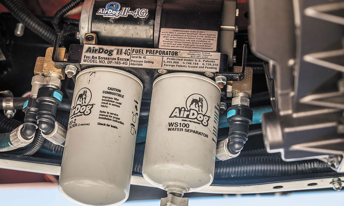 The Cummins has been bored .020 over stock, the block deburred and all new high quality internals fitted. Parts like Carillo Rods, Mahle Pistons, Hamilton cams, valves, lifters and pushrods and even a big S369 SXE Turbo with race cover and a billet wheel have been fitted. An Airdog 220 GPH, 12mm Stroker-BD Diesel Injection Pump and Exergy Injectors all add to this impressive engine package. An HP Tuner tuned by Firepunk Diesel helps the truck put down 1500 ft/lb torque and 800 HP.