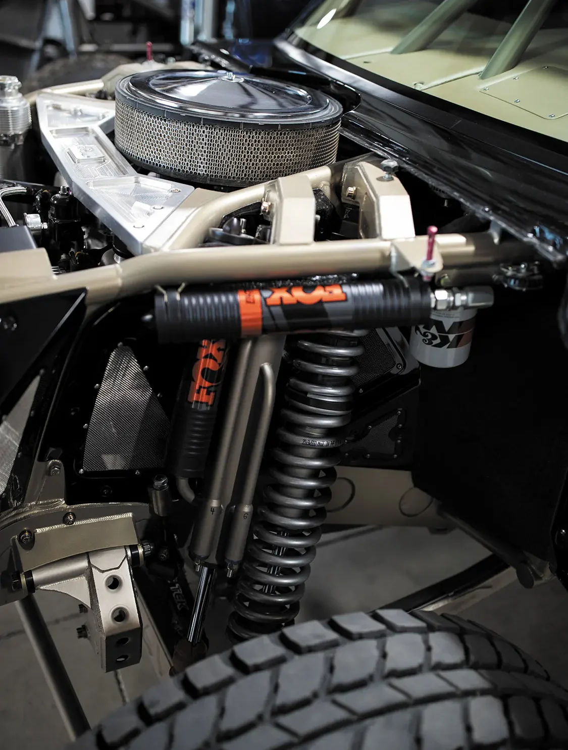 “Out back, 60-inch trailing arms and another set of Eibach springs and FOX shocks bump suspension travel up to an amazing 30 inches.”