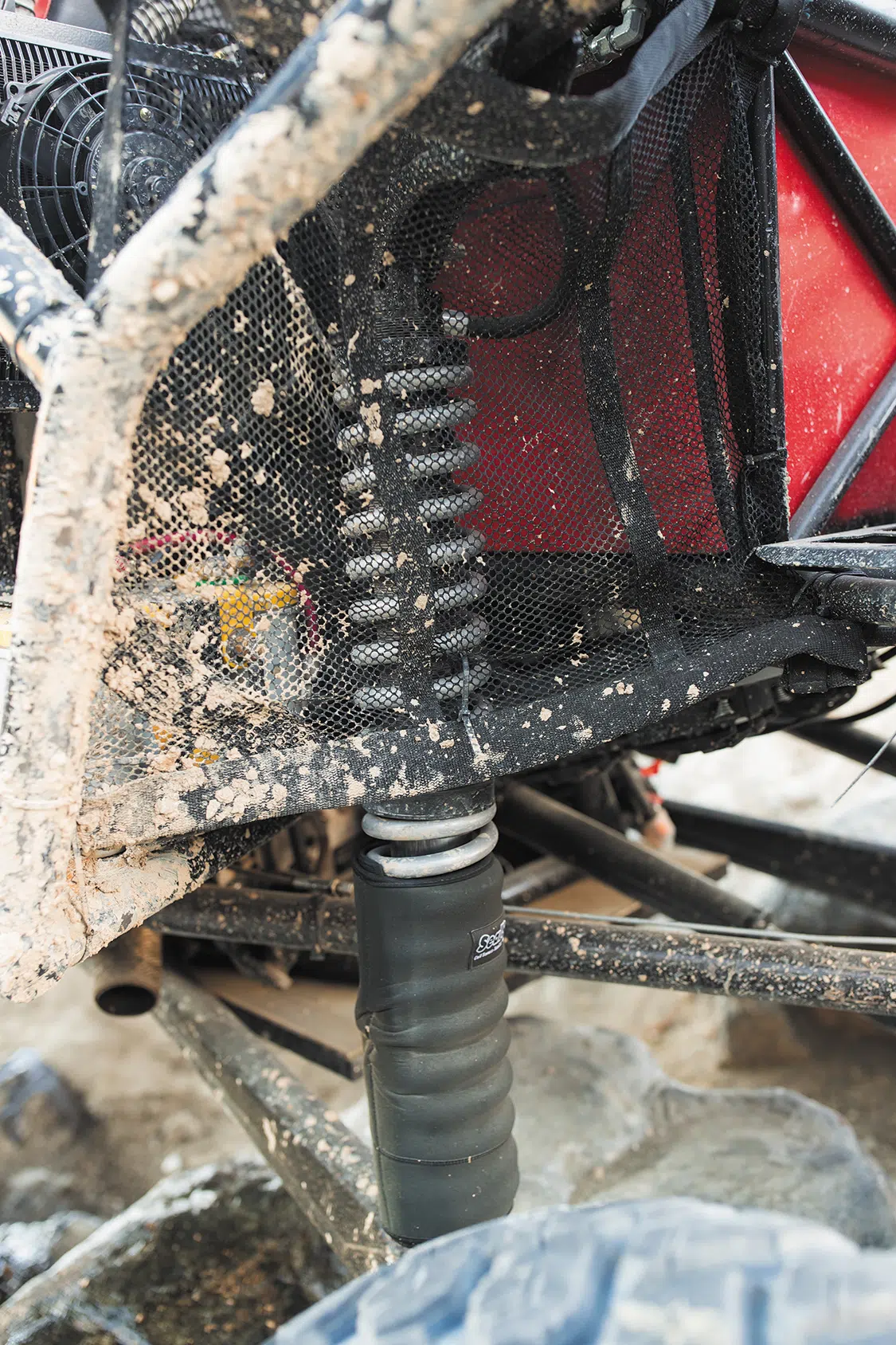 “To make sure the suspension was up to race spec, Patrick went with Locked Offroad 2.5, 16-inch stroke coilover shocks and air bump stops on all four corners, giving the rig adequate suspension travel to take on both rock obstacles and fast, wide-open desert sections.”