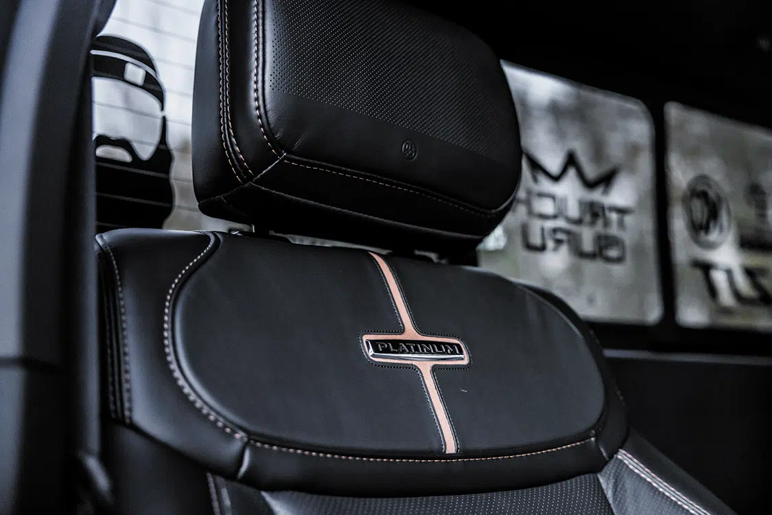 Aside from those custom accoutrements, there are plenty of high-end Platinum options present including the keyless entry handle, LED taillights, power tailgate, and all the badging that demarcates the truck from other trim levels.”