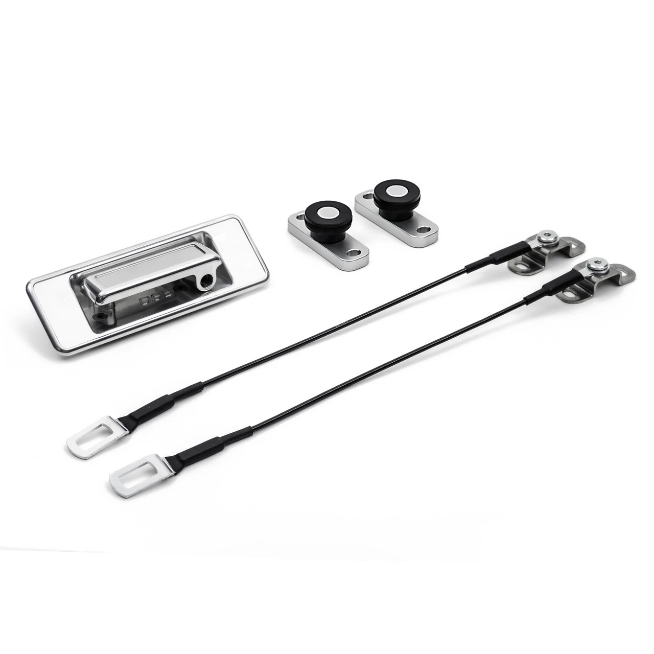 Each kit includes a Detroit Speed Billet Tailgate Handle, Delrin trunnions, and rubber‑coated support cables, all designed to work together as a system. Adjustable fitment allows precise panel alignment and reliable closure, delivering a refined, modern feel without sacrificing durability.
