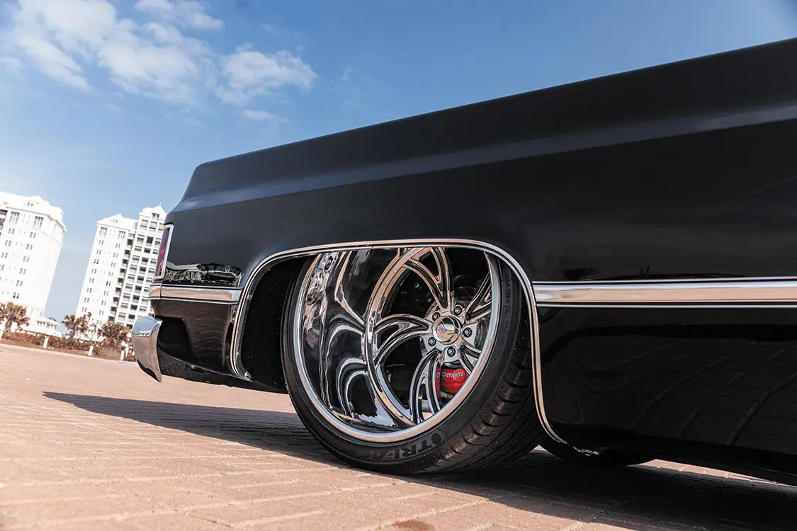 On the other hand, Thing 2, Dora’s pride and joy, brings the full showstopper vibes. Under the hood sits a fully built 6.0L from Memo Performance Tuning, topped with a Holley Hi-Ram intake that steals the spotlight every time the hood pops. While Thing 1 is all about horsepower and hook-ups, Thing 2 glides on a custom air-ride suspension with front bags and control arms and a fully customized rear back-half 4-link setup, all dialed in by Kid Metal Worx. Her “skating shoes”? A set of Intro Spyder wheels—24×9 up front and 24×15 in the rear—that give her the ultimate street queen stance.