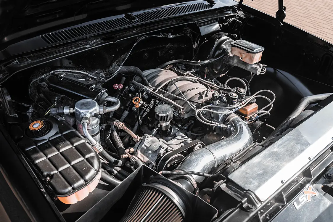 Feliciano pilots Thing 1, a purpose-built street terror powered by a forged LS2 408 stroker built by Jorge Cantu, better known as La Chicken at Kids and Cars 956. It’s not just a pretty engine; it’s packing gap insurance for those bold enough to test their luck on the street. Sitting on a static coilover setup from Kid Metal Worx in Alamo, Texas, Thing 1 rides on a Billet Specialties Redline drag pack—17x5s up front and 15x12s out back. It’s low, it’s loud, and it means business.