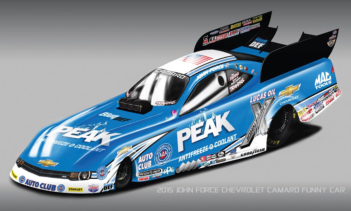 John Force Racing, Inc. and Chevrolet announced they will join forces to back the 18-time NHRA Funny Car championship team starting with the 2015 NHRA Mello Yello Drag Racing Series season. The multi-year agreement will see all three John Force Racing Chevrolet Camaro Funny Cars adorned with the iconic gold bow tie as well as the JFR Top Fuel dragster.
