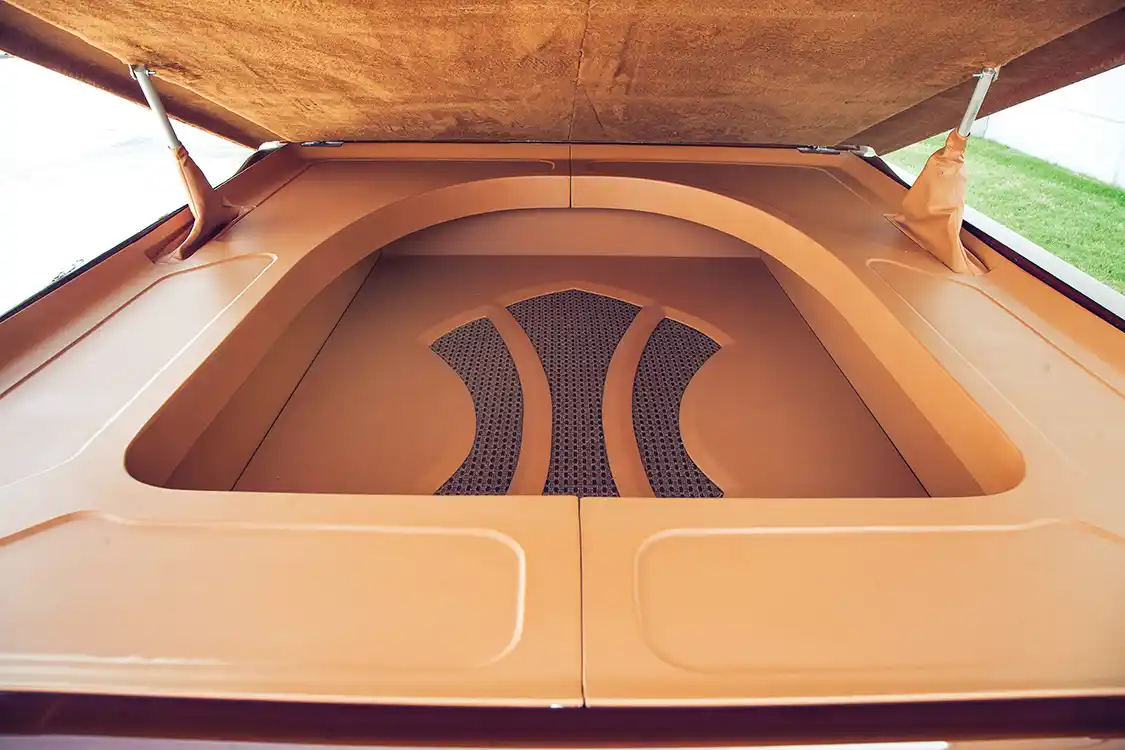 Picking a paint color is never easy, but copper just seemed right, so Meza mixed a custom PPG blend with copper flake. When the sun hits the paint, there aren’t too many things that could make you take your eyes off the truck.