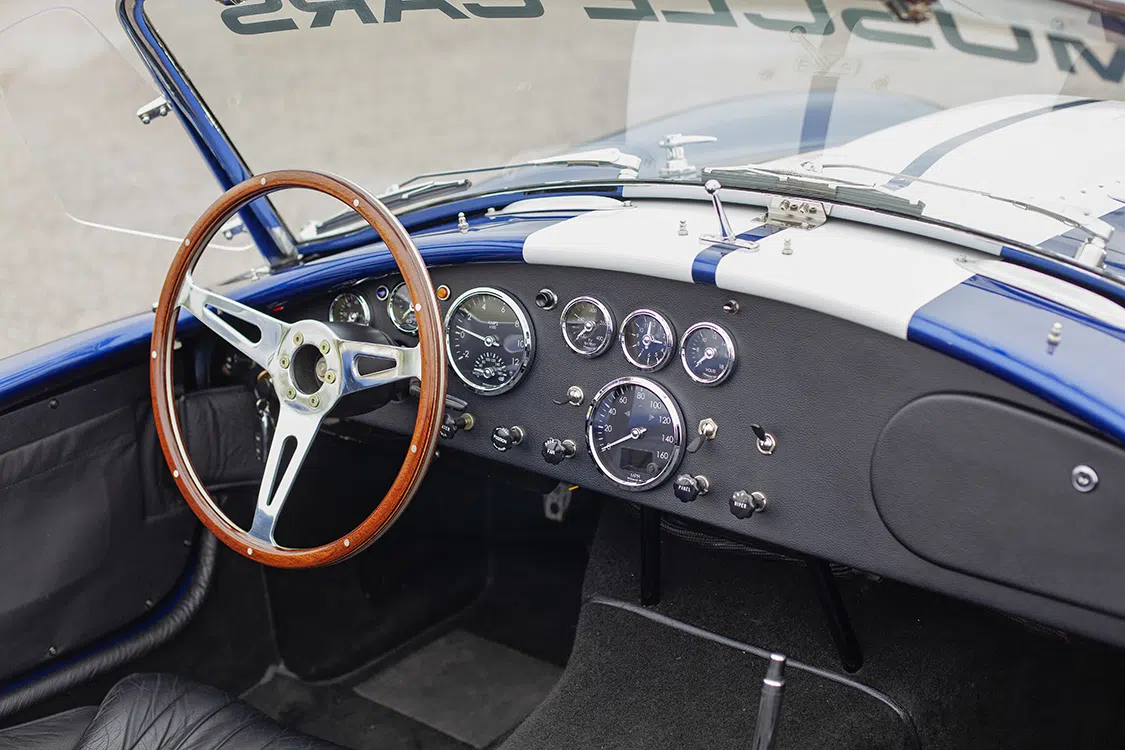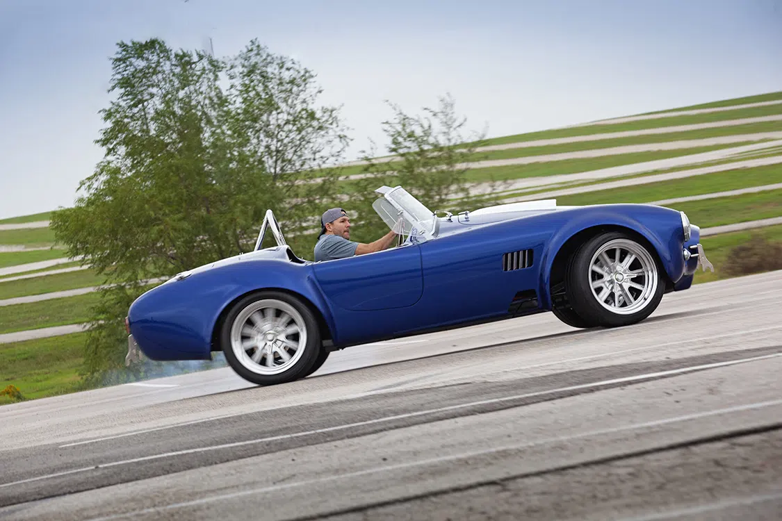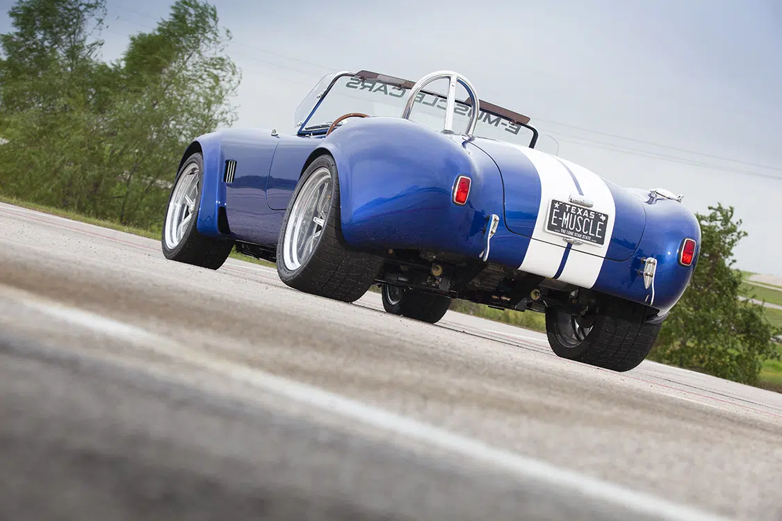 The meticulous attention to detail extends through every aspect of the E-Cobra, from the selection of Wilwood braking systems to the custom, center-lock wheels that retain the Cobra’s classic aesthetic while upgrading its performance and safety for today’s roads.