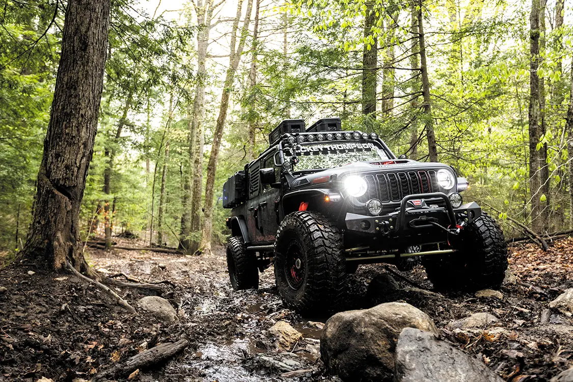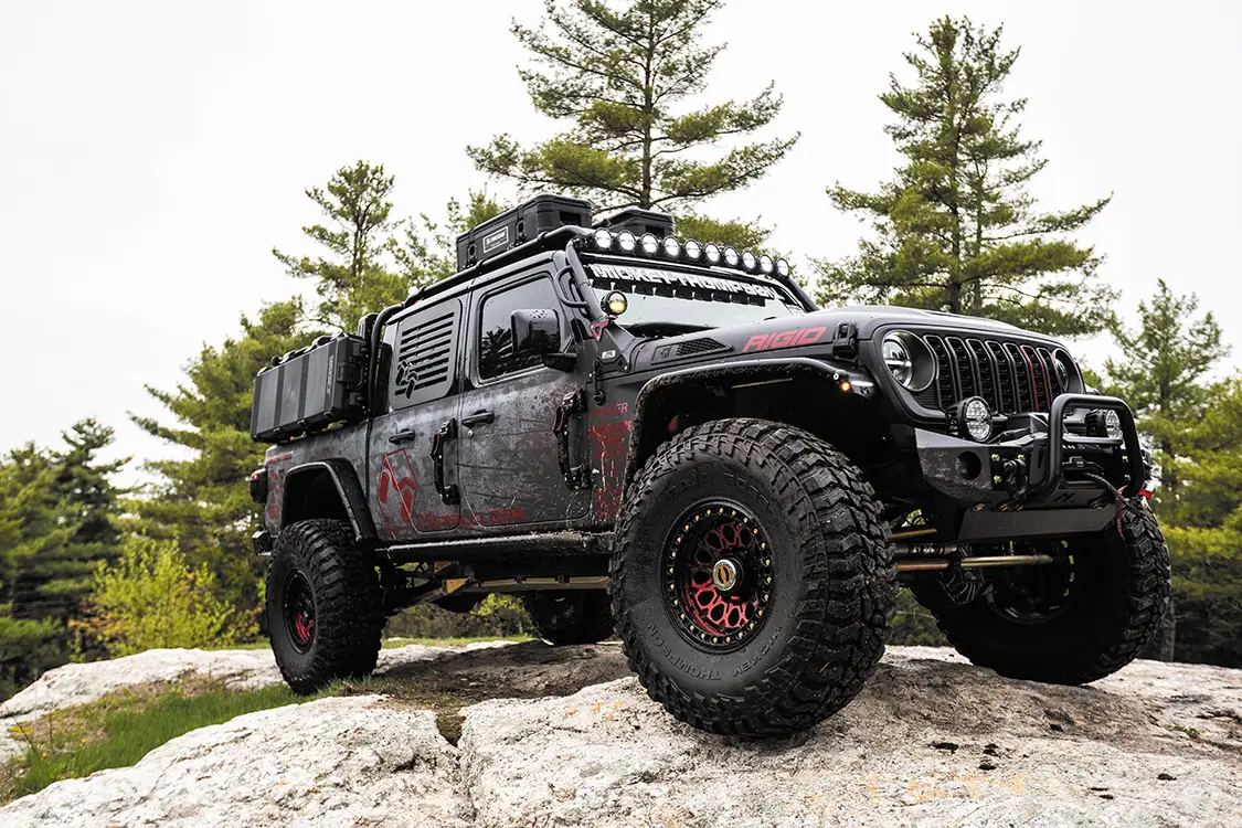 Overlanding, apocalyptic vibes, and adventure are all things that are bundled into this one vehicle . With this 2022 Jeep Gladiator, there is nothing short of its looks and handling on the streets of Casco, Maine. Meet Ryan and his Gladiator that he named Endgame. This rig is built with top brand names and parts from all over the off-road industry. Jumping right into the looks of this rig, it has a 2024+ Jeep grille on the front stuffed with a set of AlphaRex Nova Series headlights to light up daily drives. Protecting the grille and front end from any damage is a Metalcloak frame-built bumper. With just over 2 months and $190k invested into this build, this Gladiator has the components that Jeep aficionados appreciate in high-end off-road builds.