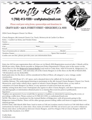 home of the Dust devils Inyokern drag strip, of the past) a population of 857 people, we will gather. Every March we hold an event it’s called a classic burger, classic car show and fundraiser.. this event is all volunteers, all proceeds go to the Ridgecrest animal shelter. Last year we had 200 cars entered. Let spread the news, get us over 200 entries. People from as far away as Ventura, California came. If you want to volunteer, please contact @crafty Kate https://facebook.com/events/s/classic-burgers-classic-car-sh/241345414959326/