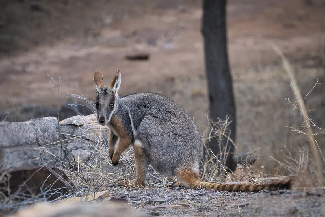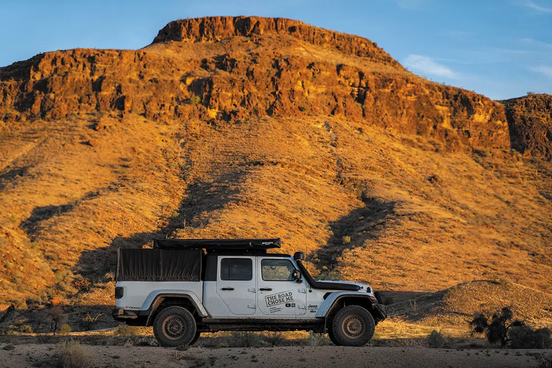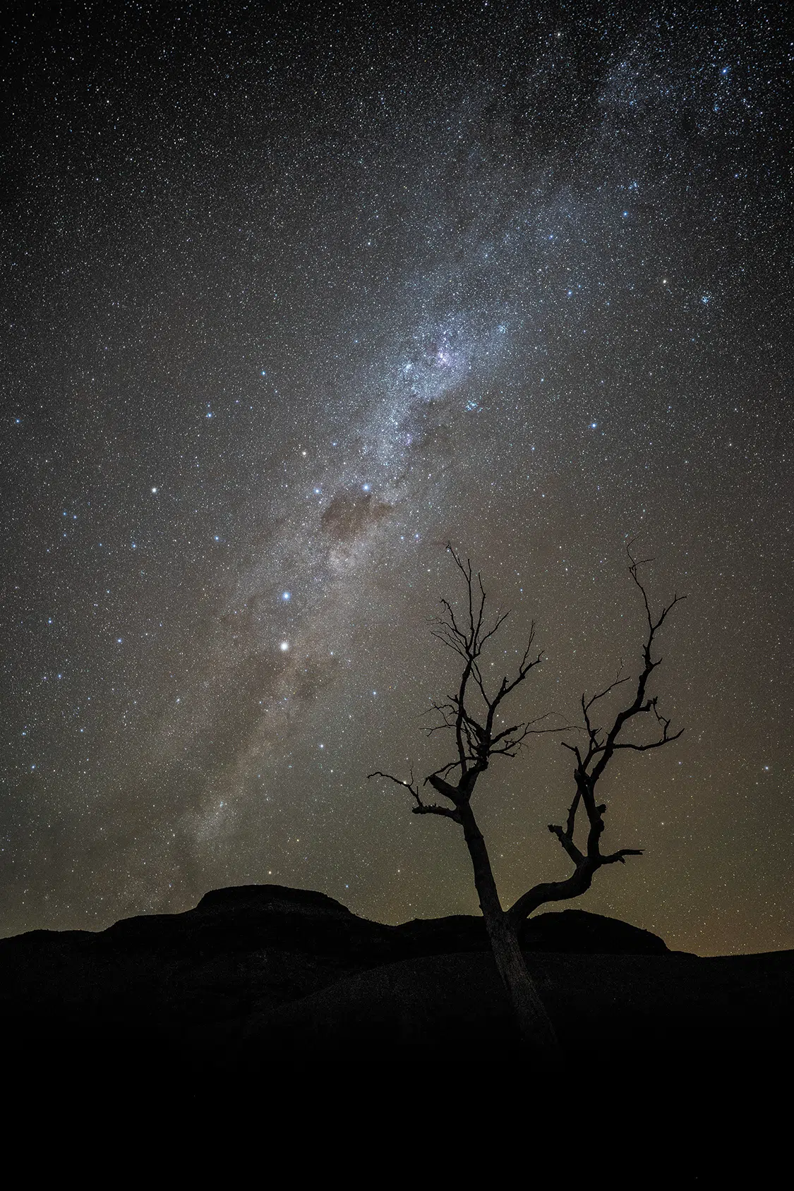 A few days later, we were on a corrugated gravel road heading northeast away from the busier central Flinders Ranges area. As the shadows grew long I realized I had underestimated distances once again, and we needed to find a campsite for the night. With no idea what to expect we made a turn for Chambers Gorge, and almost immediately I knew we were on a good thing. We drove along a rocky and mostly dry riverbed, constantly zig zagging from one side to the other in what was slowly becoming a tall gorge. The setting sun lit the way to a towering mountain, and after navigating a few small river crossings and mud patches we found ourselves at the foot of towering Mount Chambers—the perfect place to call home for the night. After climbing out of the riverbed we had commanding views of the rolling hills in the near distance, and the ever present peak at 1,341 feet provided a stunning backdrop to watch the mighty Milky Way slowly appear. As we cooked dinner to the sounds of utter desert silence we couldn’t help but pinch ourselves at our good luck in stumbling across this amazing wild paradise.